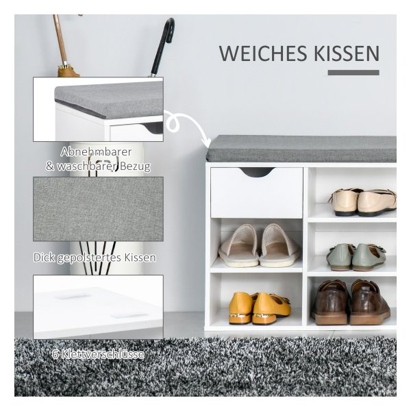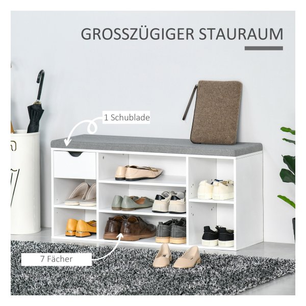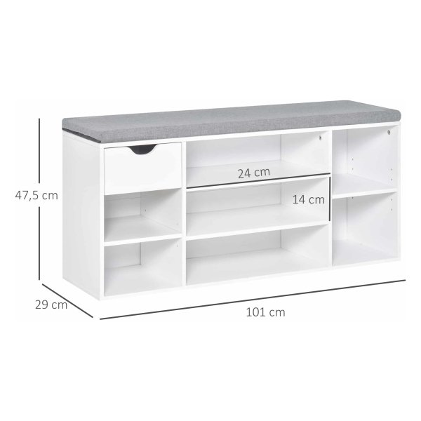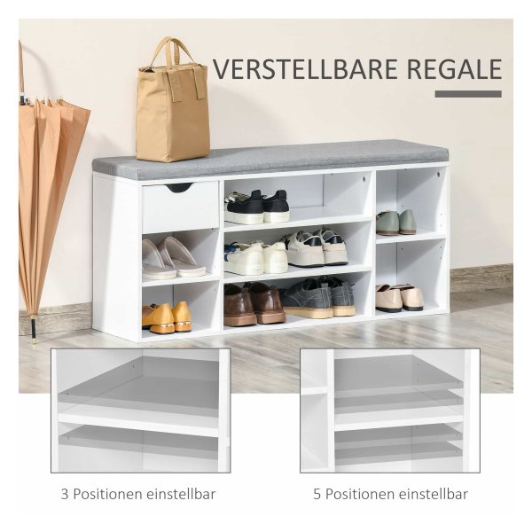 Daarnaast heeft de opbergbank opslagruimte voor 10 paar schoenen (standaard maat), waardoor u uw schoeisel netjes kunt opbergen en georganiseerd kunt houden. De verstelbare planken kunnen ook worden gebruikt voor sneakers, laarzen en schoenen met hoge hakken.