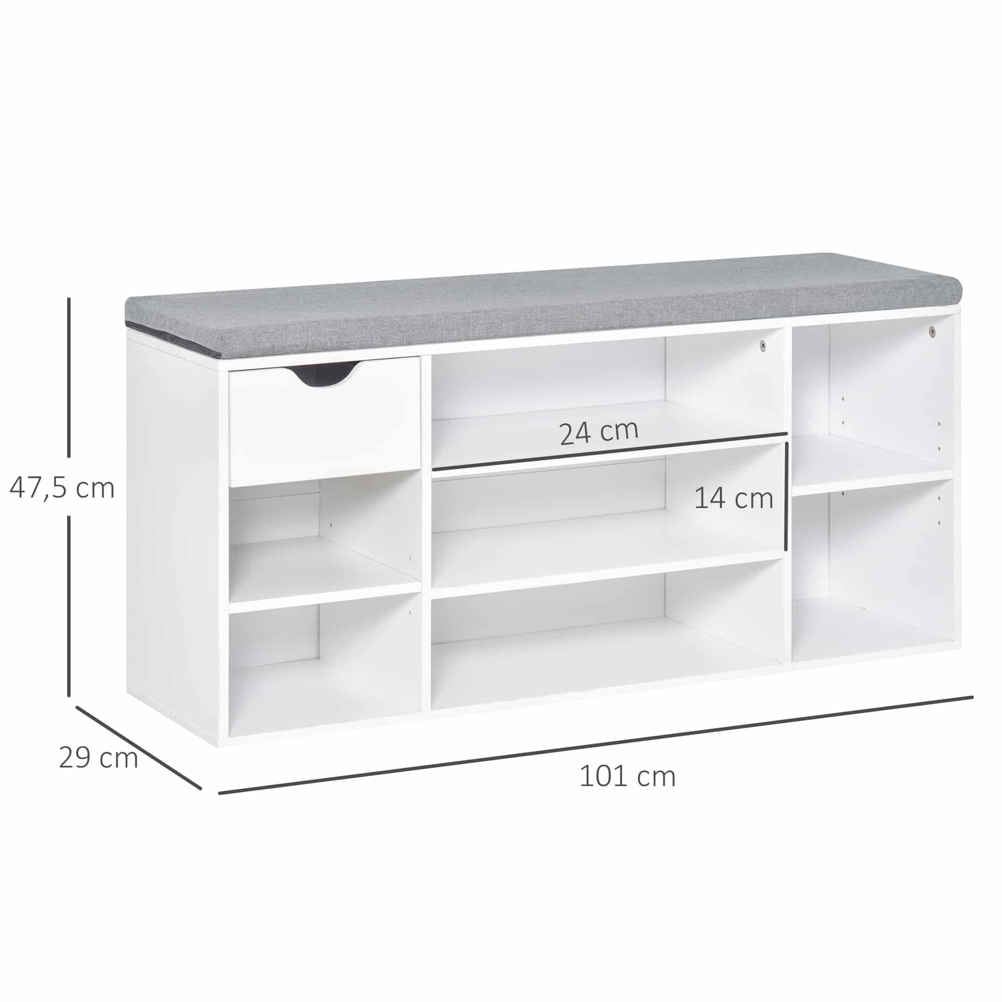 Opbergbank – ComfortHome – Verstelbare planken – Wit