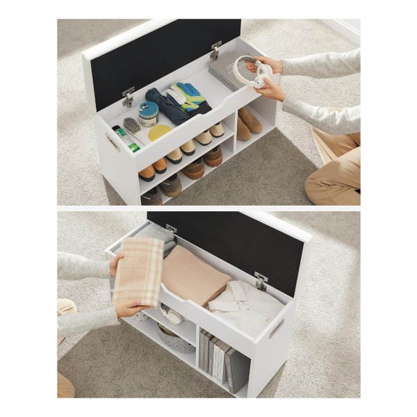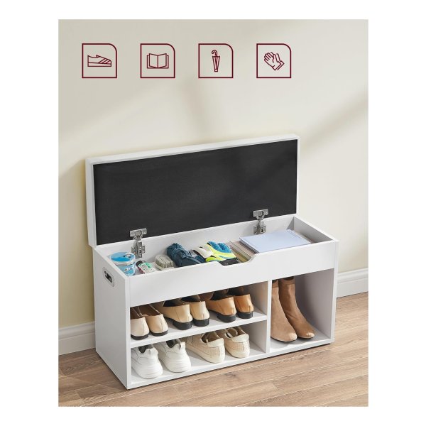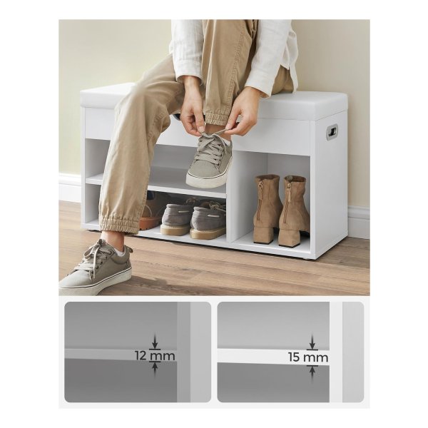 ZAZA Home Schoenenbank, schoenenkast, schoenenrek, halbank, gestoffeerd zitbank, 30x80x44cm, Wit