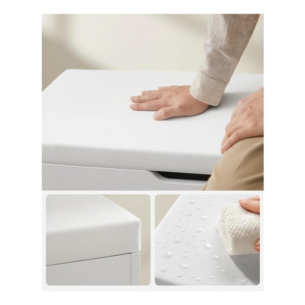 De schoenenbank is uitgerust met een 4 cm dik kussen, gevuld met schuim en bekleed met onderhoudsvriendelijk PU-materiaal. Dit zorgt voor een zachte en comfortabele zitplaats, ideaal voor het aantrekken van schoenen of een moment van ontspanning.