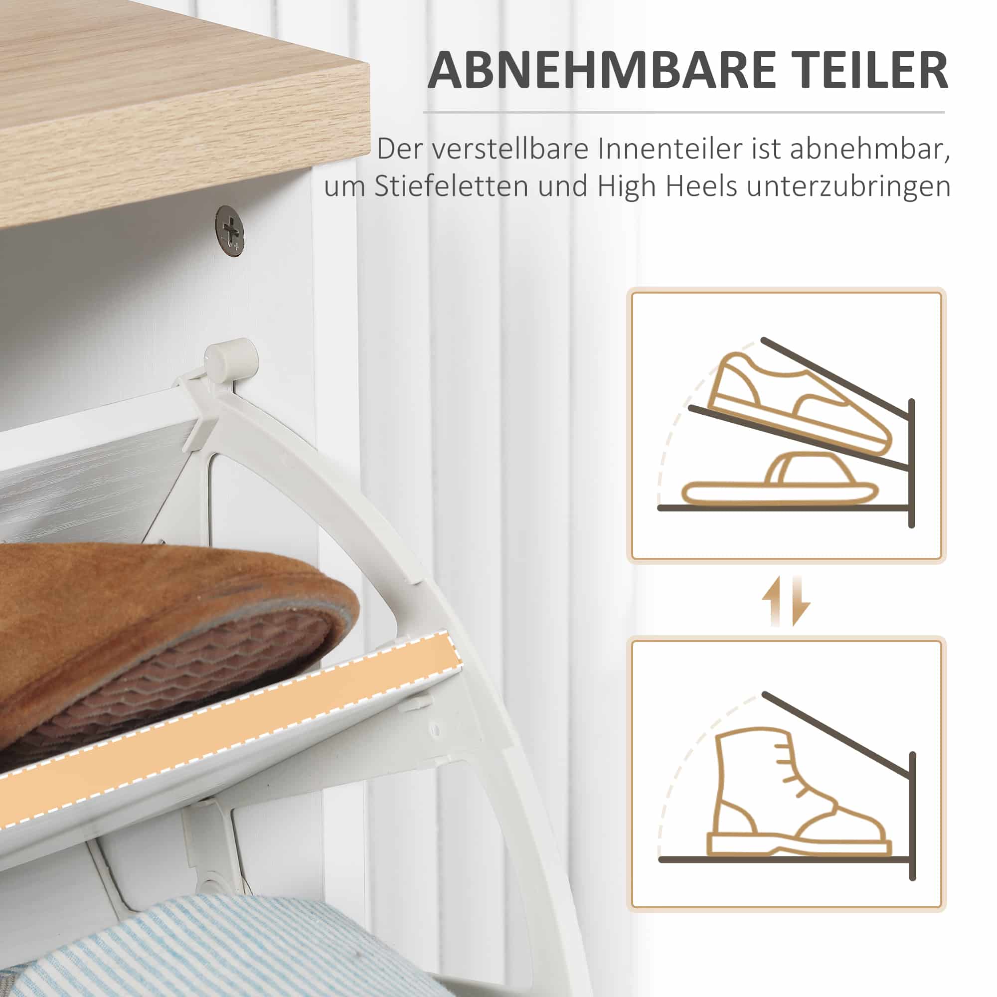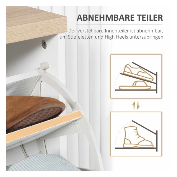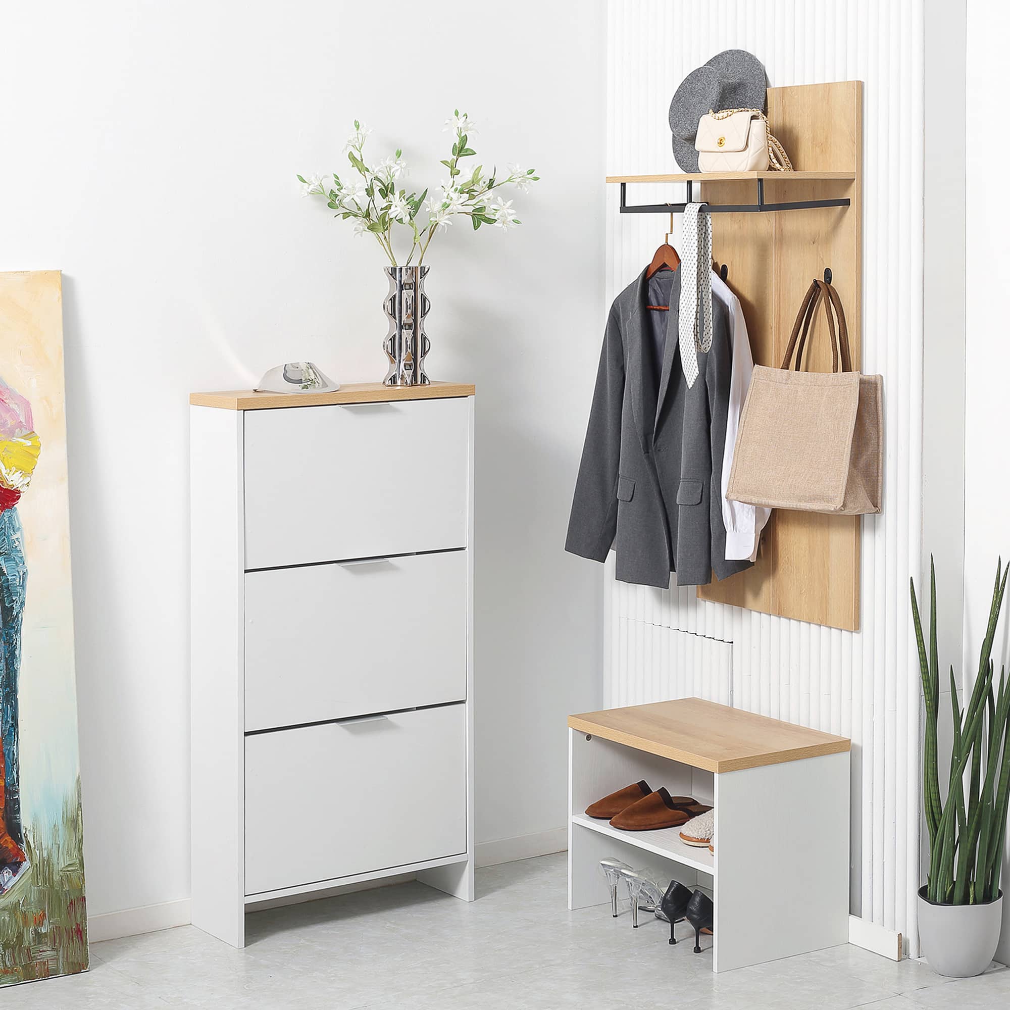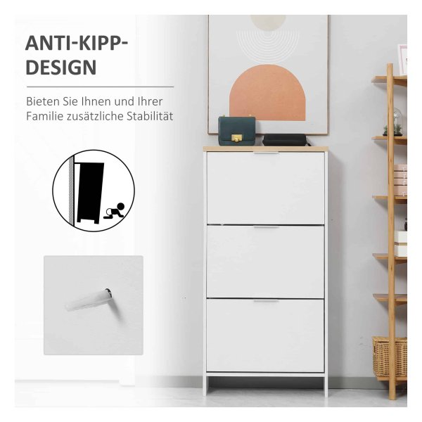 Dankzij het anti-tilt-ontwerp biedt de lade extra stabiliteit en veiligheid, waardoor u zich geen zorgen hoeft te maken over omvallen. Gemaakt van hoogwaardig MDF materiaal heeft de schoenenlade een gewichtscapaciteit van 15 kg, wat zorgt voor een lange levensduur.