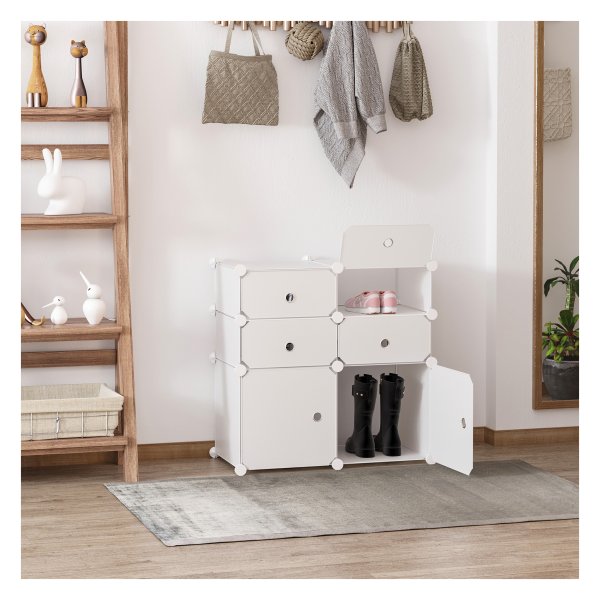De Stijlvolle Kast met Ruime opbergruimte in de kleur Wit is een must-have voor elk huis. Deze multifunctionele kast is ontworpen met oog voor zowel stijl als functionaliteit. Met een modulair systeem kunt u de compartimenten afzonderlijk of in combinatie gebruiken, afhankelijk van uw behoeften. Of het nu gaat om kleding, schoenen, accessoires, speelgoed, boeken of andere items, deze kast biedt voldoende opslagruimte.