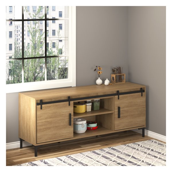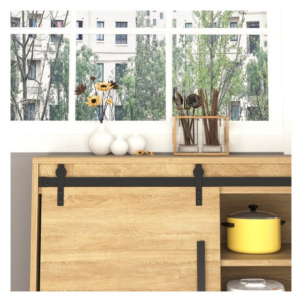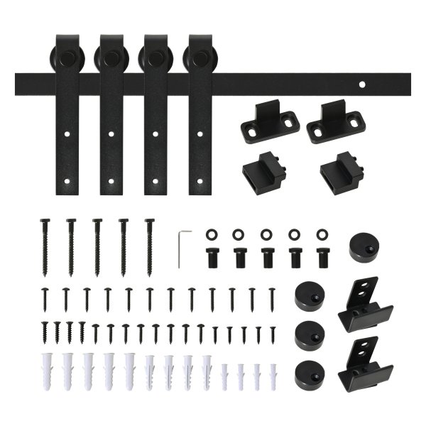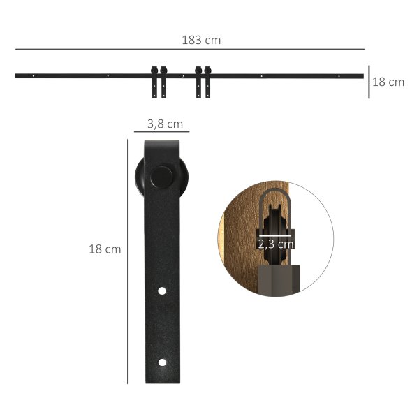 Met een elegante hout kleur en afmetingen van 183b x 0,6t x 18h cm past dit schuifdeursysteem perfect bij elk interieur. De totale lengte van elke rail is 91,5 cm en de afmetingen van elke rol zijn 3.8b x 2,3t x 18h cm. De maximale breedte van de deurpanelen die kunnen worden gebruikt is 45 cm.