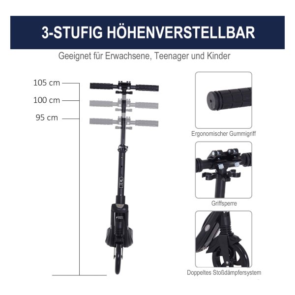 De hoogte van de autoped is aanpasbaar aan jouw behoeften, met een stuur dat verstelbaar is van 95 cm tot 105 cm voor comfortabel rijden voor zowel jongeren als volwassenen.