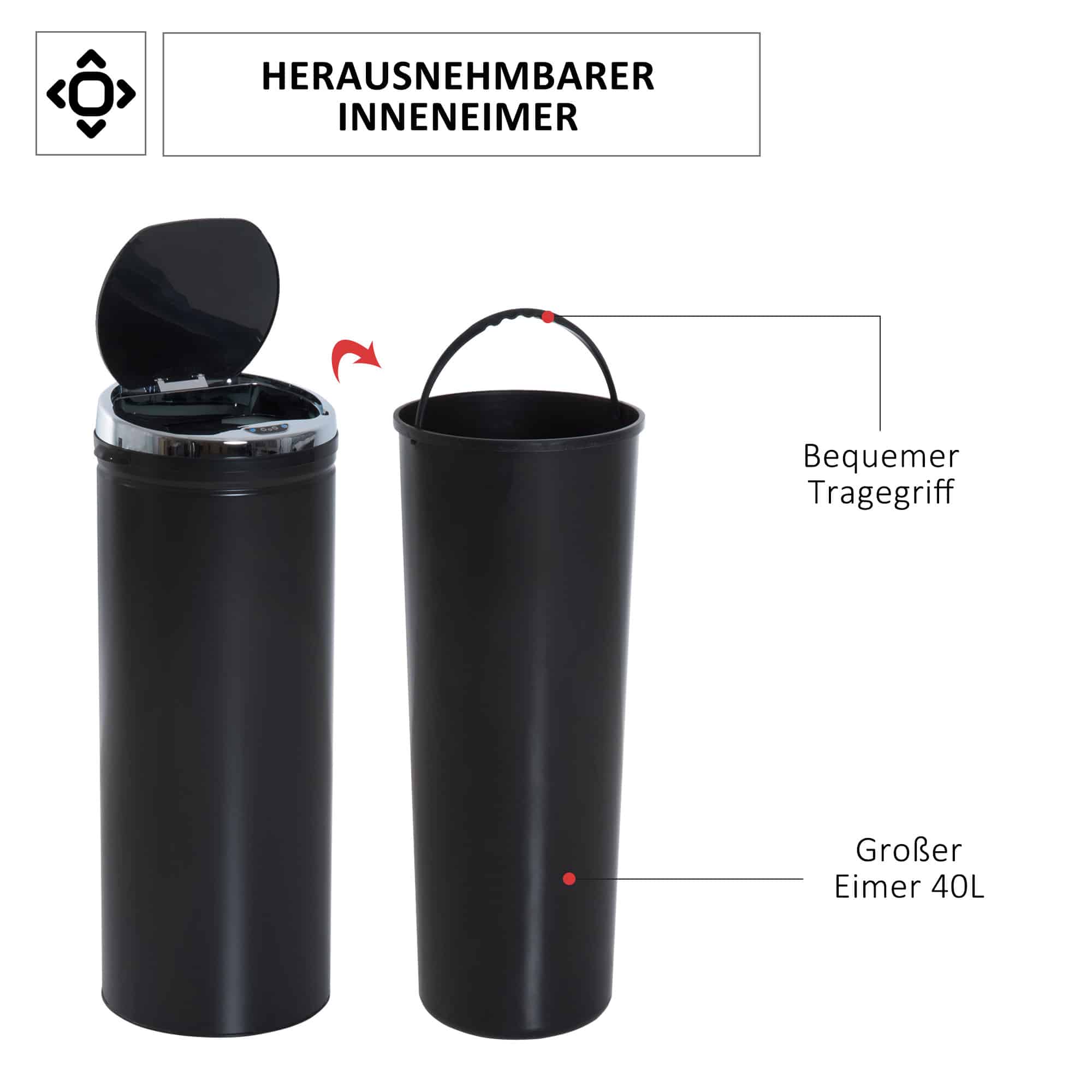 ✔ Infraroodsensor voor het openen en sluiten van het deksel – ook te openen met knoppen