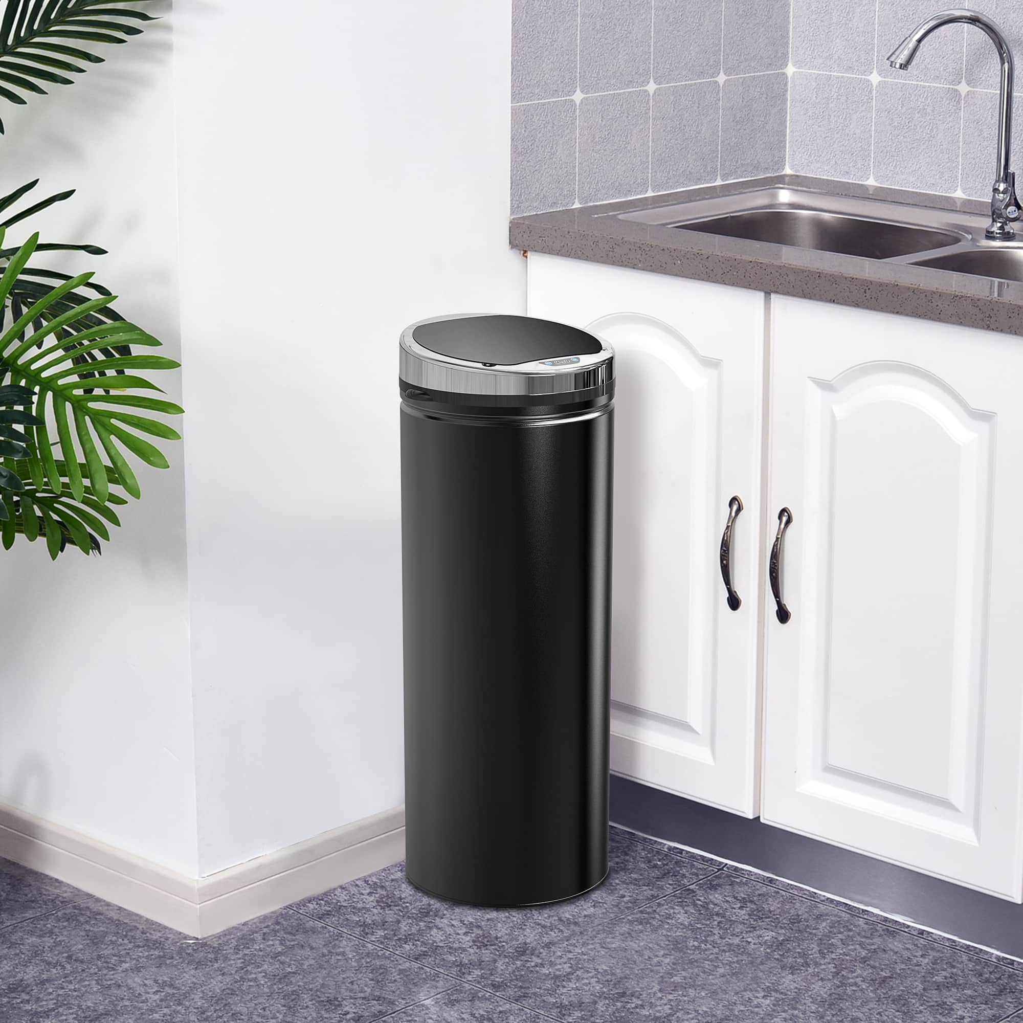 Automatische Afvalbak met Infraroodsensor, 50L Roestvrijstalen Keukenprullenbak voor Woonkamer, Kantoor, Zwart