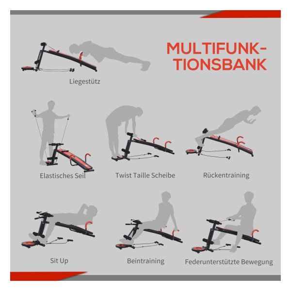 Fitnessbank – Verstelbaar – Buikspiertrainer – Rood/Zwart