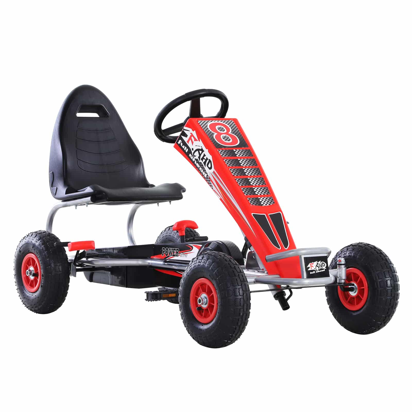 Laat je kinderen tussen de 5 en 12 jaar genieten van eindeloos speelplezier met deze fantastische pedaal-skelter. De skelter is uitgevoerd in een stoere race-lak in de kleuren rood, wit en zwart en zal zeker indruk maken op jonge coureurs.