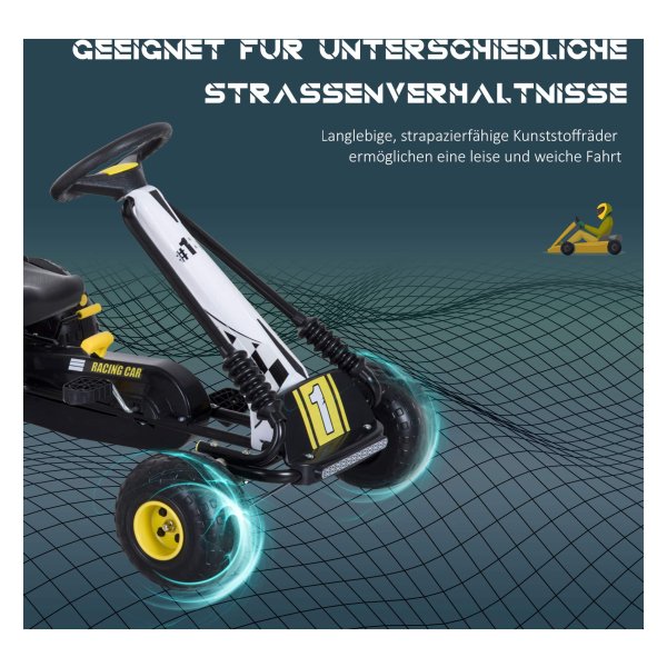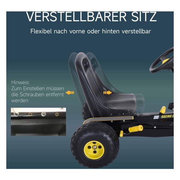 De ergonomische zitting van de skelter zorgt voor comfort en ondersteuning tijdens het rijden. De stoel kan flexibel naar voren of naar achteren worden versteld, zodat je jonge coureurs altijd comfortabel zitten, ongeacht hun lengte.