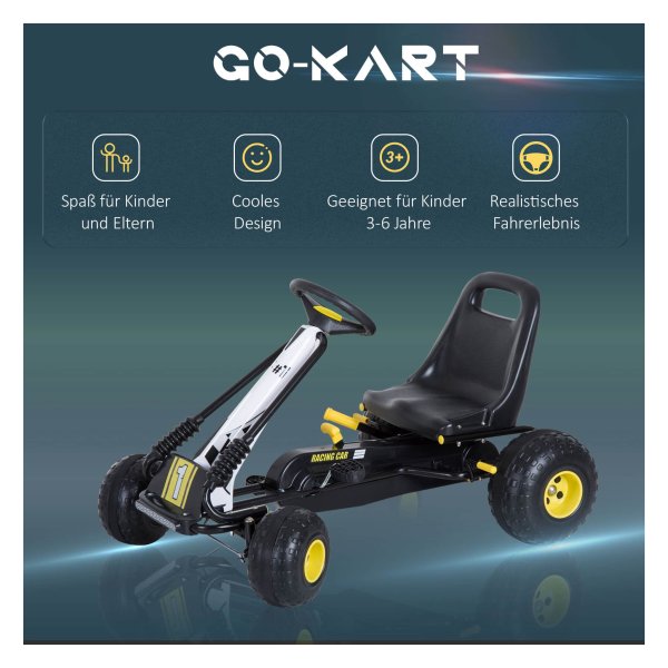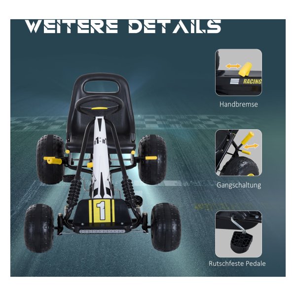 Laat je kleintjes versnellen, scherpe bochten maken en zoef over gras en zand met onze zwarte kindertrapauto. Het strakke racedesign van deze skelter zorgt ervoor dat je kinderen maar wat graag naar buiten gaan om te spelen en rijden. Urenlang rijplezier is gegarandeerd, zelfs voor de allerkleinsten vanaf 3 jaar.