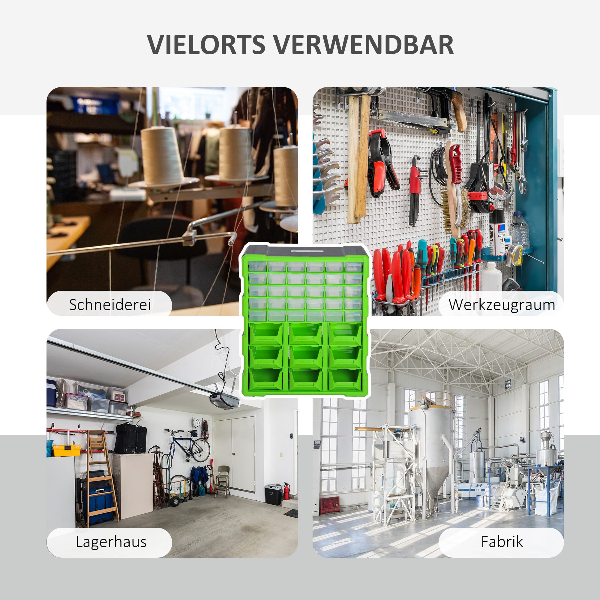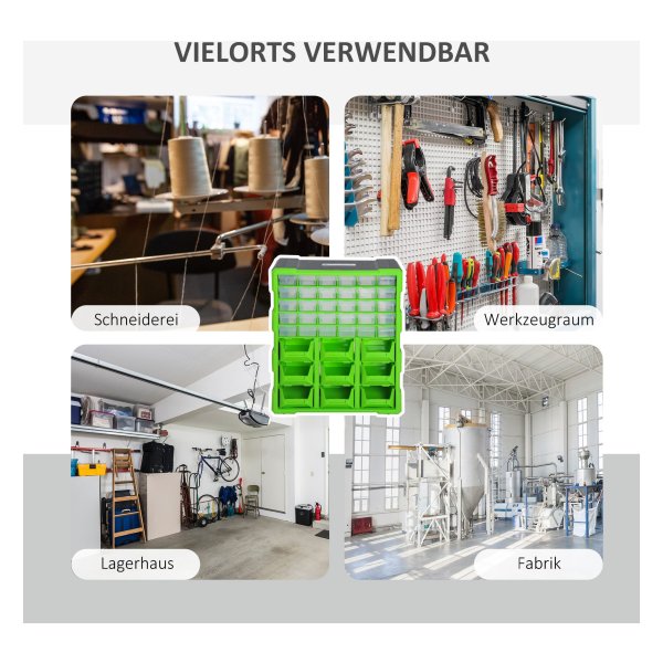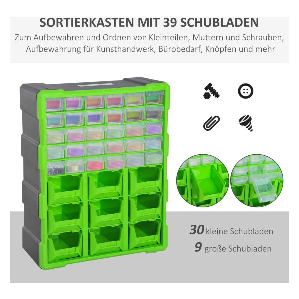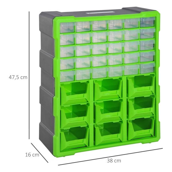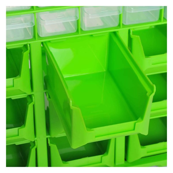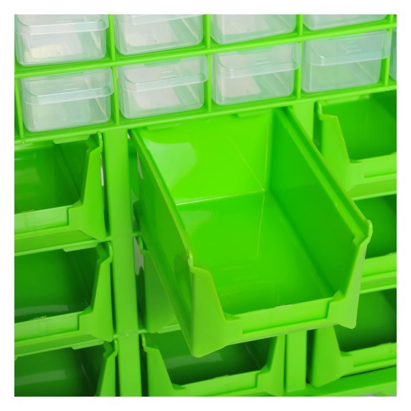 Ben je op zoek naar een handige manier om je werkruimte georganiseerd te houden? De compacte organizer met 39 vakken in een stijlvolle groene kleur is de perfecte oplossing voor al je opbergbehoeften. Met deze handige organizer kunnen al je kleine onderdelen zoals schroeven, nagels en hoeken overzichtelijk worden gesorteerd en snel worden teruggevonden wanneer je ze nodig hebt.