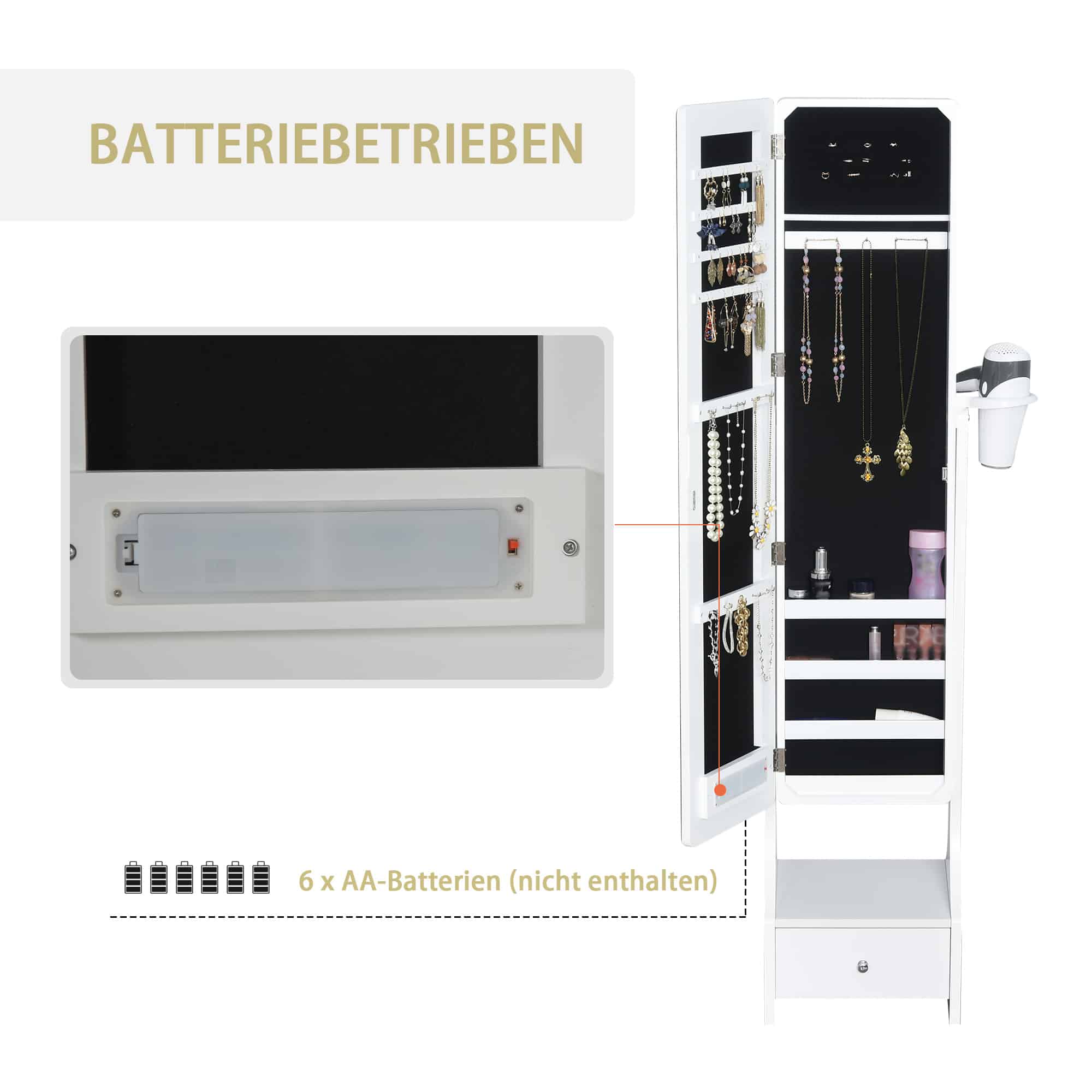 Ledlampen – Spiegelkast – Sieradenopslag – Wit