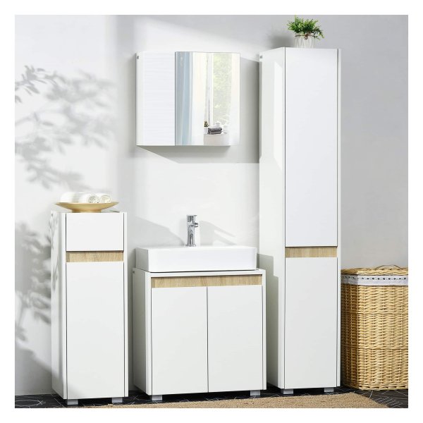 De badkamerkast wordt geleverd met een spiegelkast en instructies voor eenvoudige montage. Met deze kast voeg je niet alleen functionaliteit toe aan je badkamer, maar ook een vleugje luxe en elegantie. Bestel vandaag nog en creëer een opgeruimde en stijlvolle badkamer!