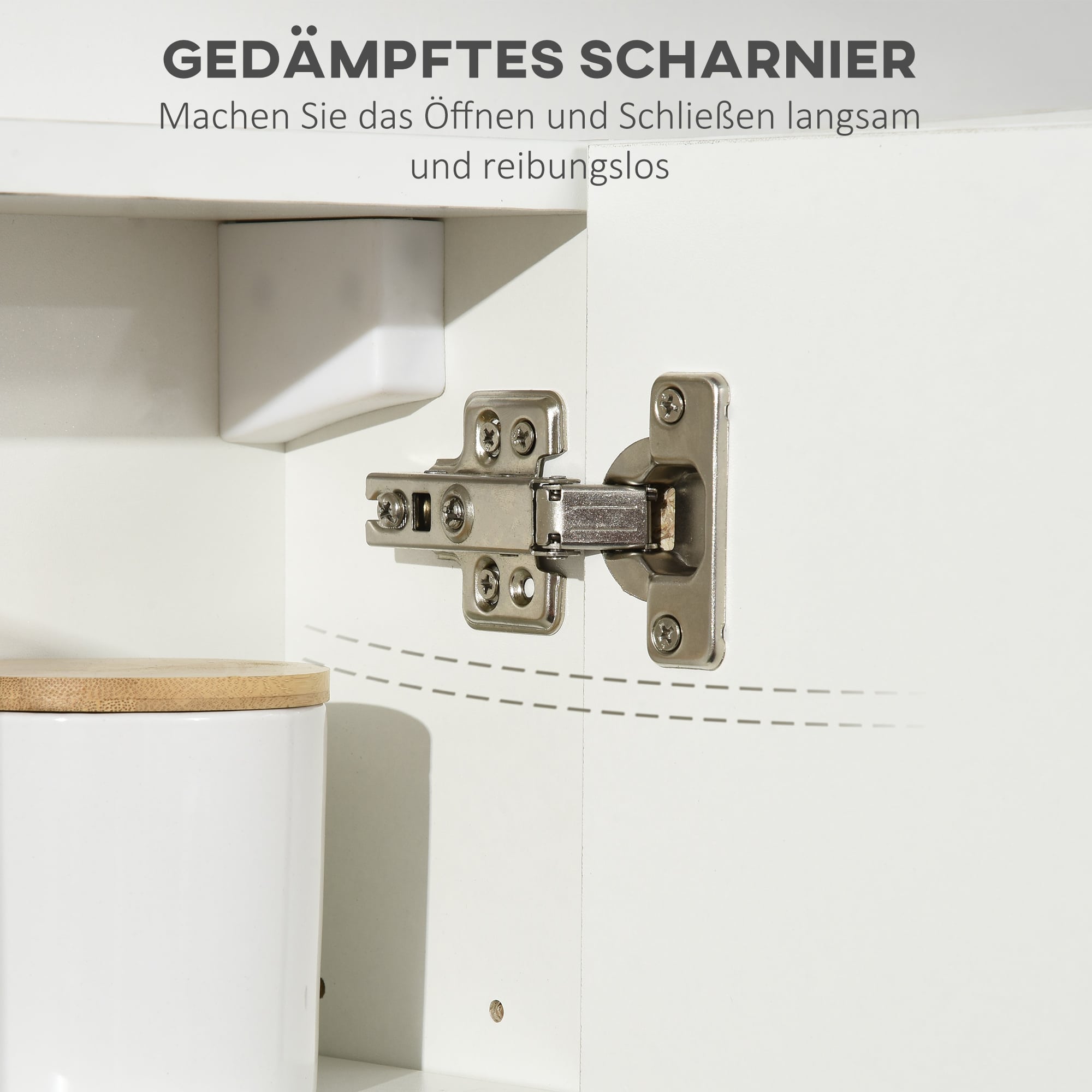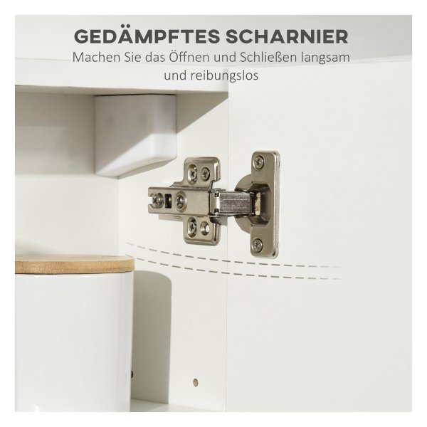 Deze badkamerkast is gebouwd om lang mee te gaan, dankzij het gebruik van hoogwaardig spaanplaatmateriaal. De scharnieren zorgen voor een geruisloos en veilig sluitingsproces, zodat je niet hoeft te vrezen voor plotselinge geluiden.