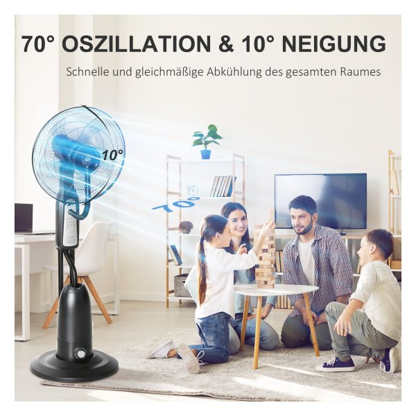 Deze ventilator zorgt niet alleen voor verkoeling, maar heeft ook een handige mistfunctie voor extra vochtigheid. De instelbare watervolume zorgt voor een aangename luchtvochtigheid, terwijl de aanpasbare hoek en draaihoek zorgen voor een optimale luchtverspreiding.