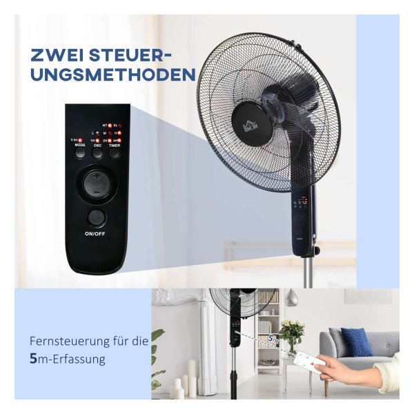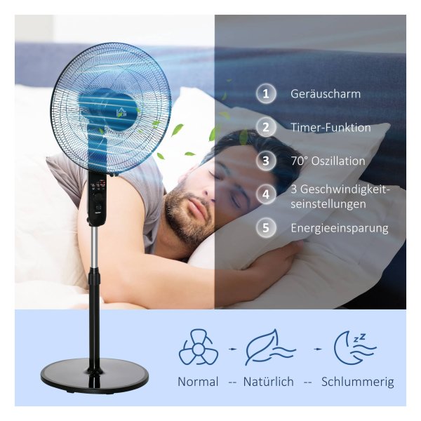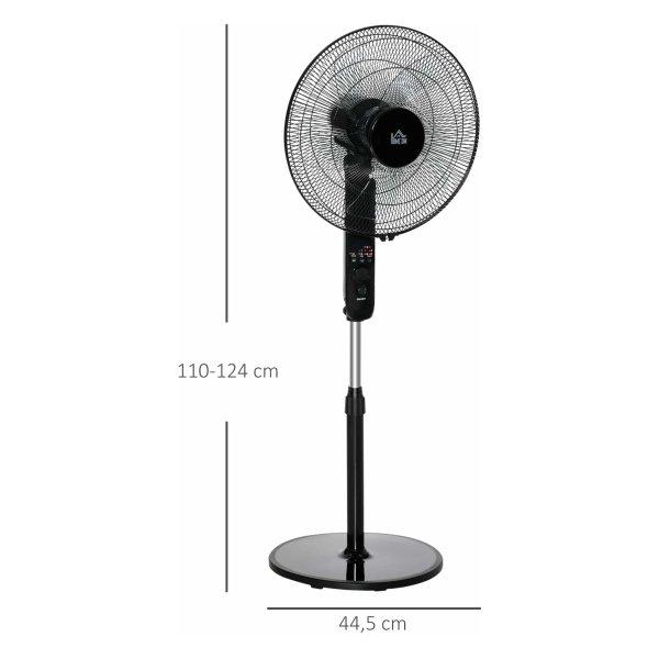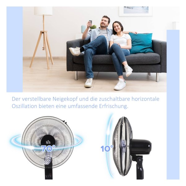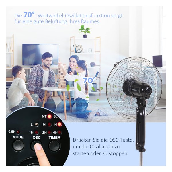 Deze ventilator is niet alleen stijlvol, maar ook zeer efficiënt. Dankzij de verstelbare hoogte van 110 cm tot 124 cm en de zwenk horizontale oscillatie kun je de luchtstroom naar wens aanpassen. Zo geniet je altijd van een aangename koelte waar je het nodig hebt.