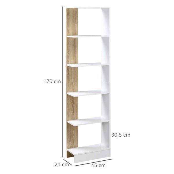 Deze boekenplank heeft een totale afmeting van 45b x 21d x 170h cm en kan een gewicht van maximaal 30 kg dragen (6 kg per plank). De plank wordt geleverd met duidelijke instructies voor een eenvoudige montage.