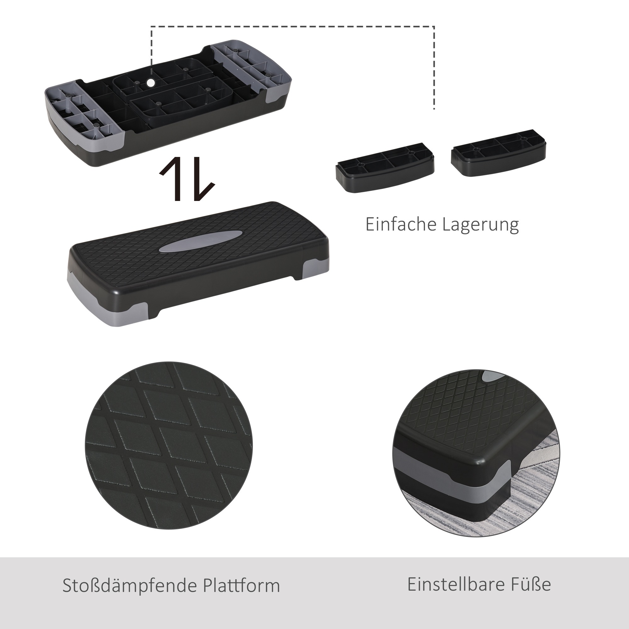 Fitnessstaplank – Aerobe Fitness Thuis Trainer – Verstelbaar Niveau – Thuisgebruik – Zwart/Grijs