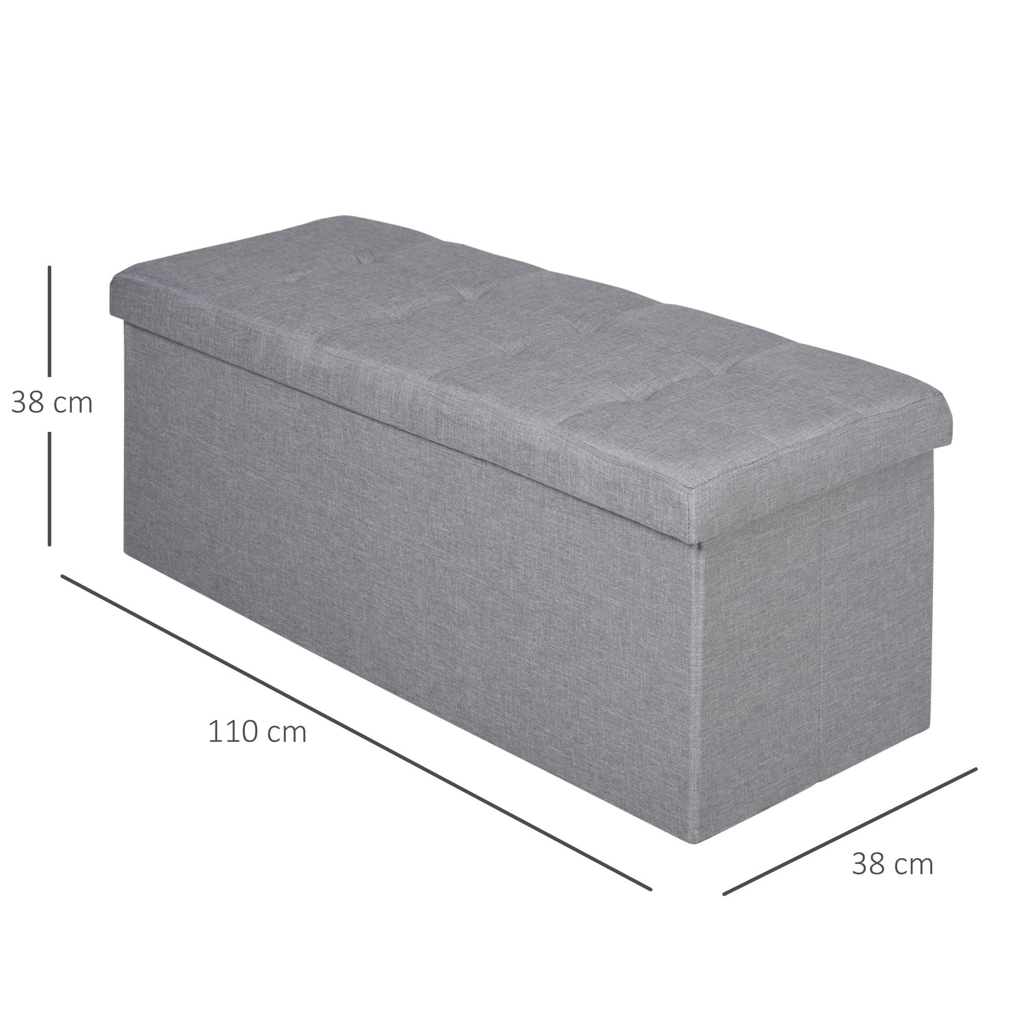 Met 110 x 38 x 38 cm (LxBxH) aan afmetingen biedt deze opbergbank voldoende ruimte om al jouw extra’s op te bergen. Beddengoed, boeken, speelgoed, en meer kunnen netjes worden opgeborgen in de handige compartimenten. Bovendien klapt de bank gemakkelijk op tot slechts 4 cm hoogte, waardoor het een ruimtebesparende oplossing is wanneer deze niet in gebruik is.