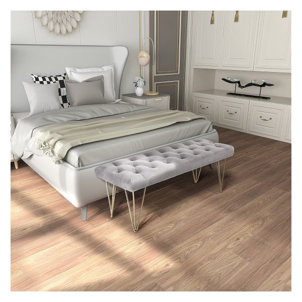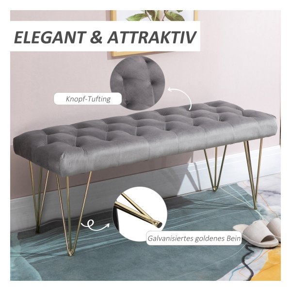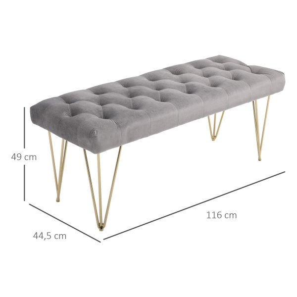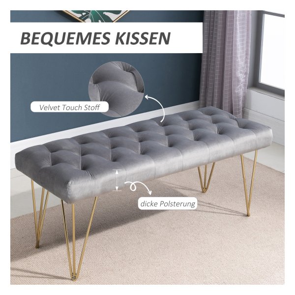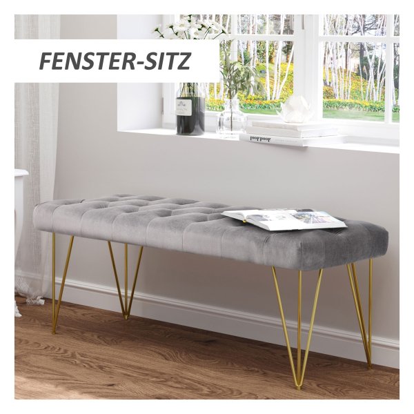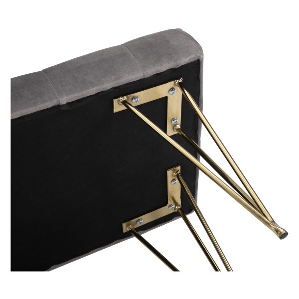 De bank beschikt over handige opslagruimte onder het zitgedeelte, ideaal voor het opbergen van schoenen, dekens of andere spullen. De comfortabele zitting is perfect voor het aantrekken van schoenen in de gang of voor ontspanning in de woonkamer. Het fluwelen materiaal voelt zacht aan en zorgt voor een luxueuze uitstraling.