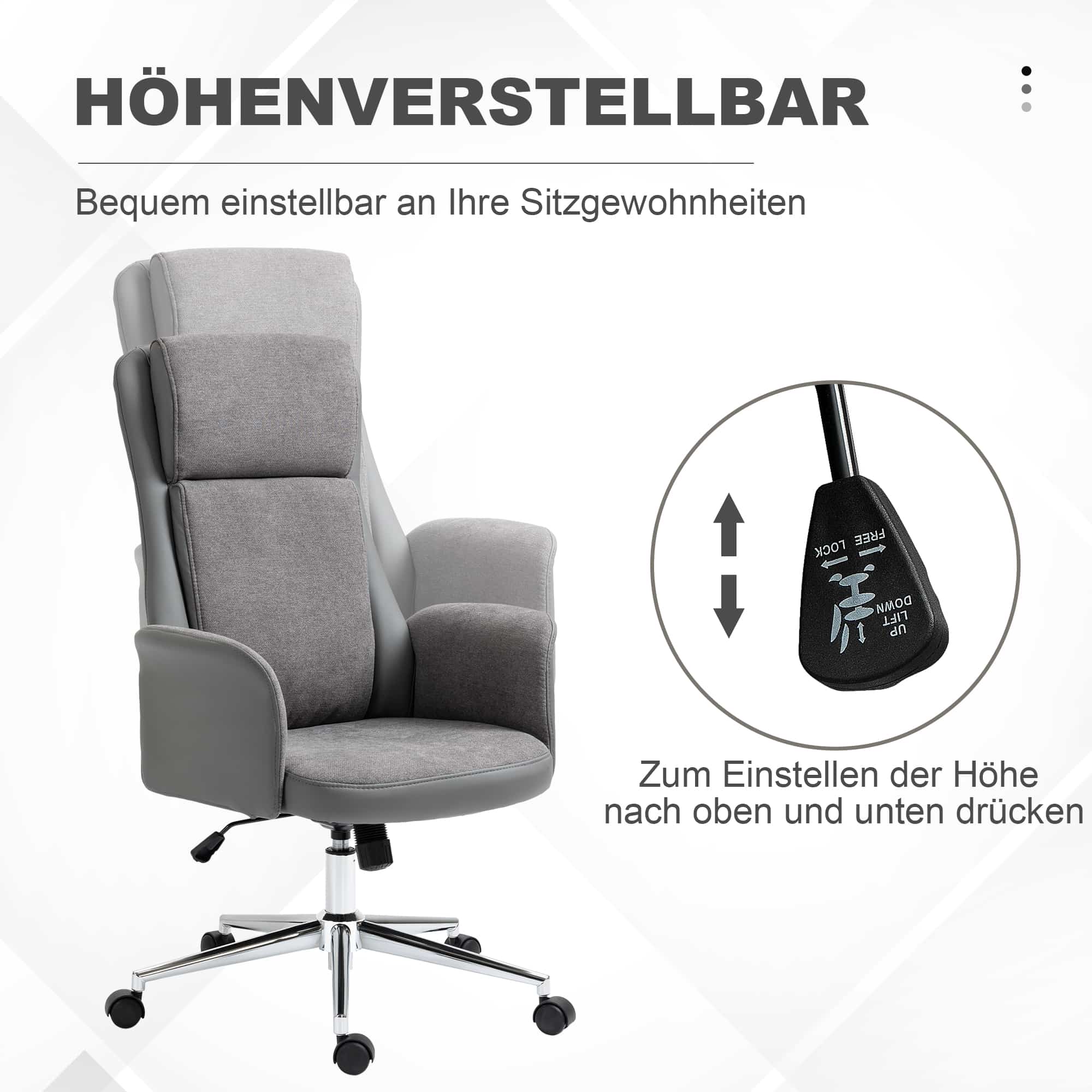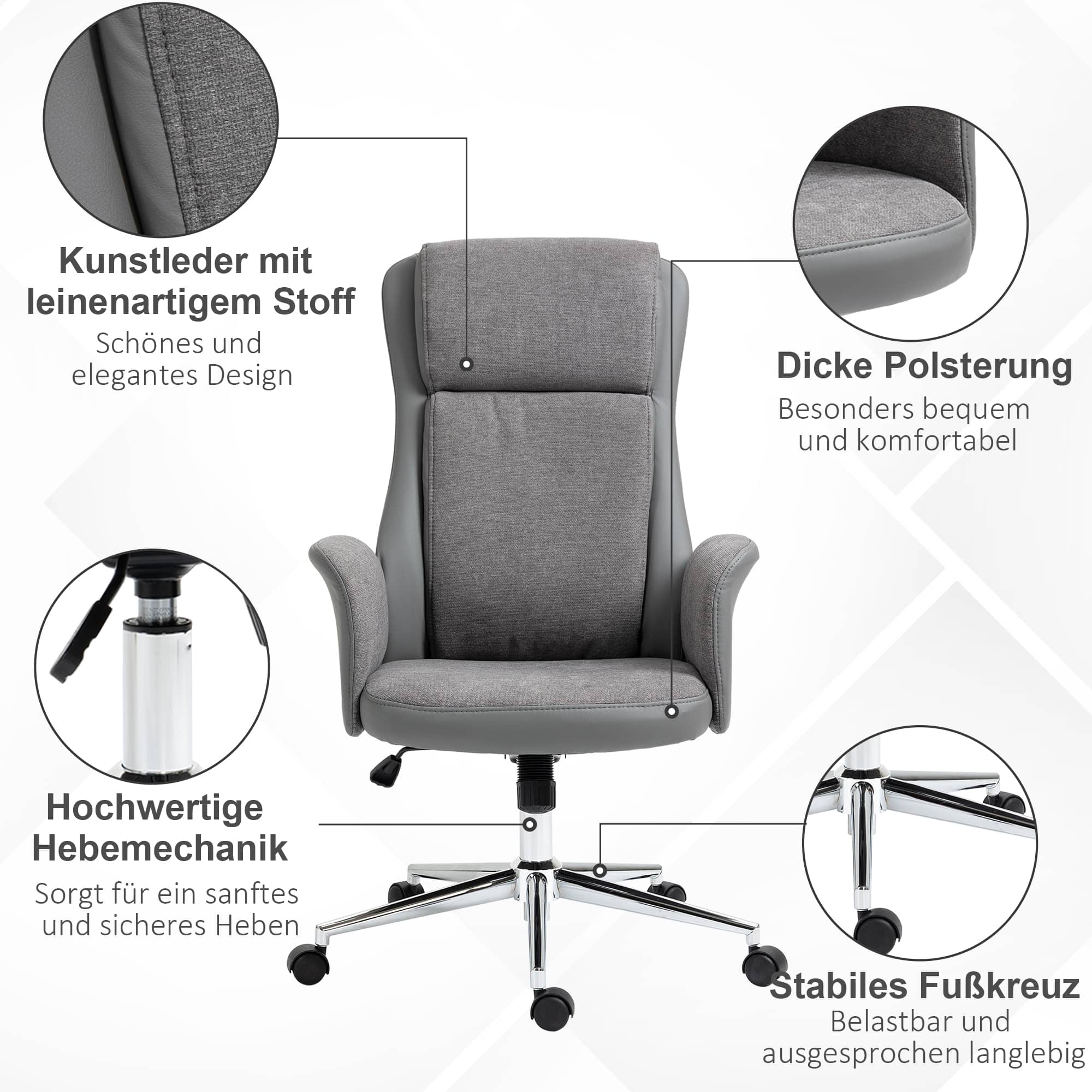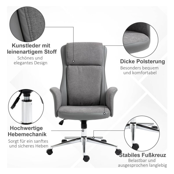 - De elegante hoes van synthetisch leer en stof in linnenlook geeft de stoel een luxe uitstraling en zorgt voor een comfortabele zitervaring.