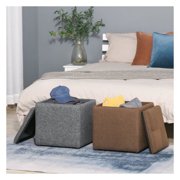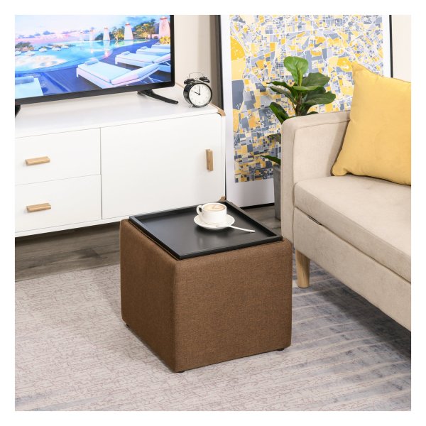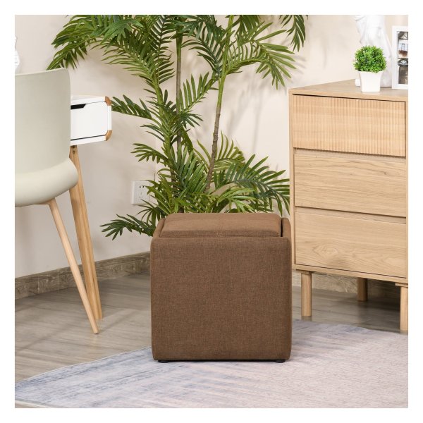 Opbergdoos – Home Essentials – Gestoffeerde zitting – Verwijderbaar deksel – Bruin