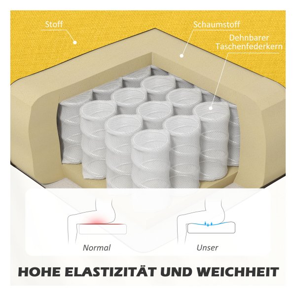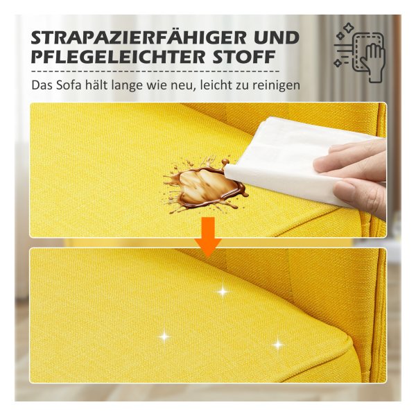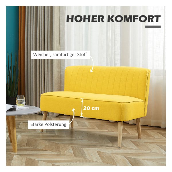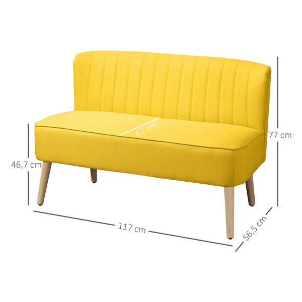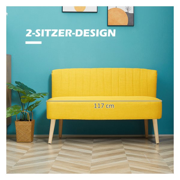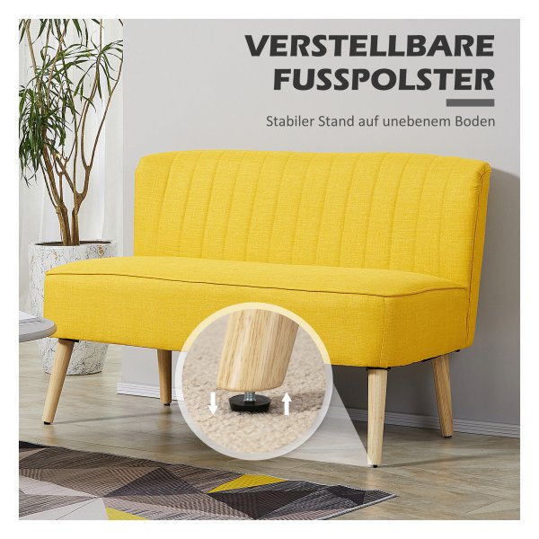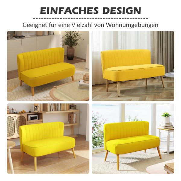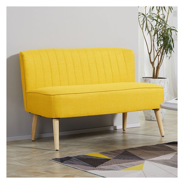 Of het nu in de woonkamer, gang of slaapkamer is, deze 2-zitplaatsen bank past perfect in verschillende omgevingen dankzij het eenvoudige ontwerp en de gele kleur die een vleugje stijl toevoegt aan iedere ruimte.