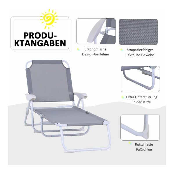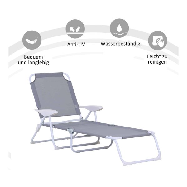 Ligstoel – Opvouwbaar – Verstelbaar – Grijs