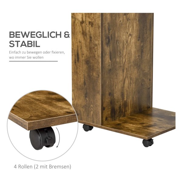 Bijzettafel – Stowa Shop – Mobiele Tafel – Rustieke Houten Look – Bruin