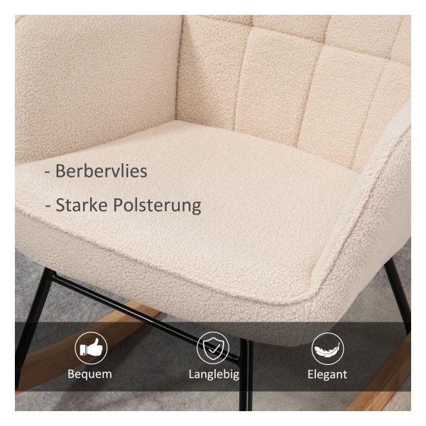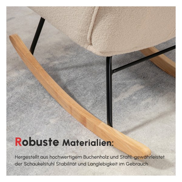- Materiaal: 100% polyester berbervlies, beukenhout, staal, schuim