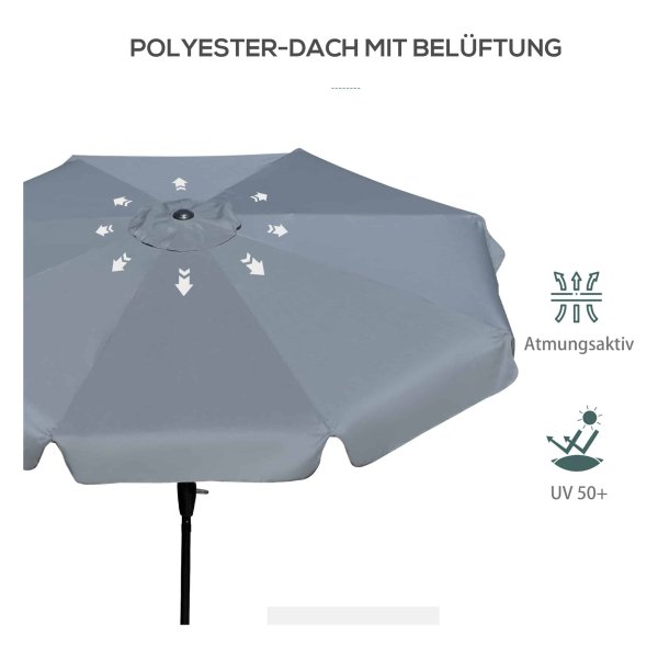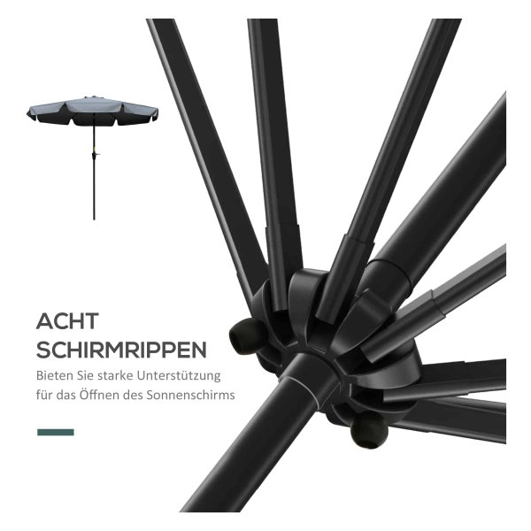 - Met een poeder gecoate aluminium mast en 8 metalen stutten is deze parasol stevig en duurzaam, waardoor hij bestand is tegen verschillende weersomstandigheden.