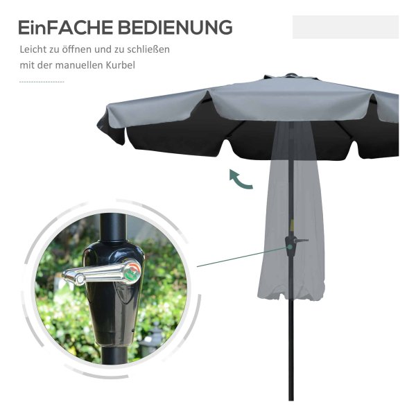 - De crankmechanisme maakt het gemakkelijk om de parasol te openen en sluiten, waardoor u snel en eenvoudig schaduw kunt creëren wanneer dat nodig is.