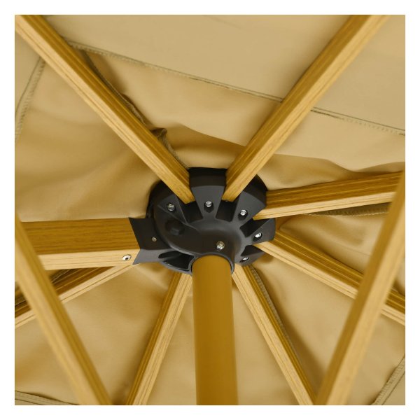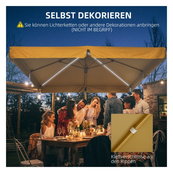 - Verstevigde stutten met velsignalen maken het eenvoudig om decoratieve verlichting of andere versieringen aan de parasol te bevestigen.