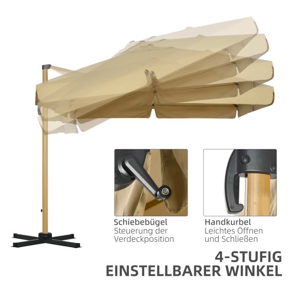 - Wordt geleverd met een beschermende tarpauline om de levensduur van de parasol te verlengen.