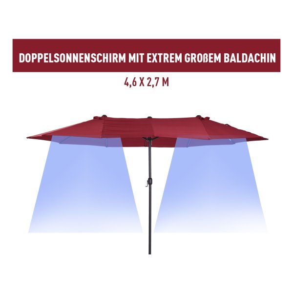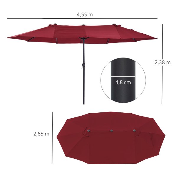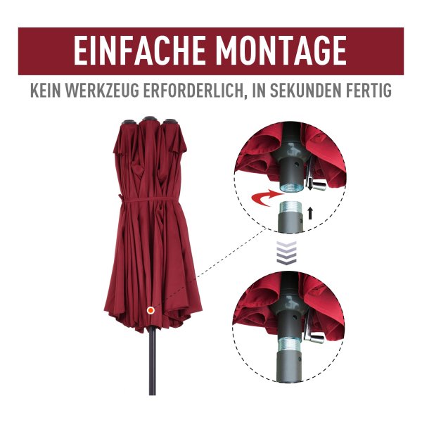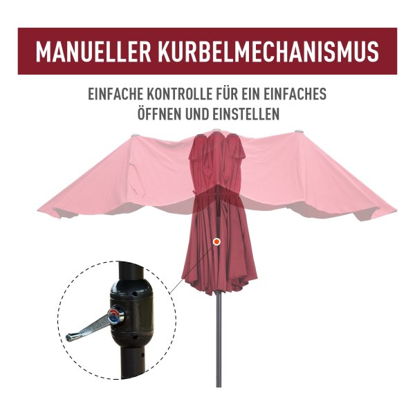 Zonnescherm – Dubbel – Handmatige bediening – Wijnrood