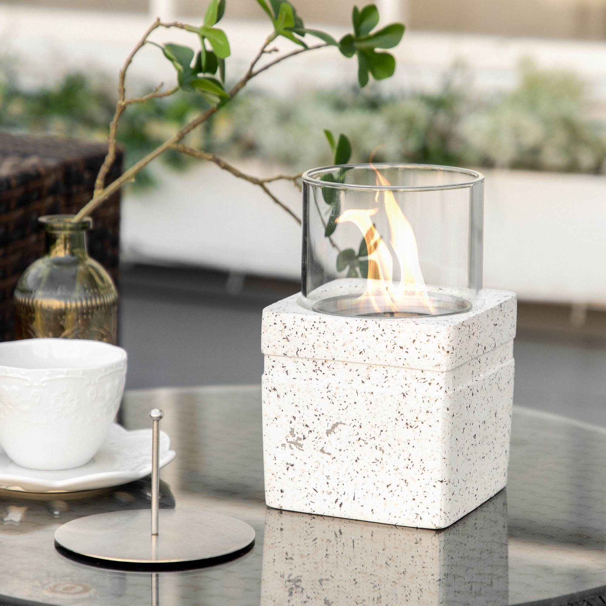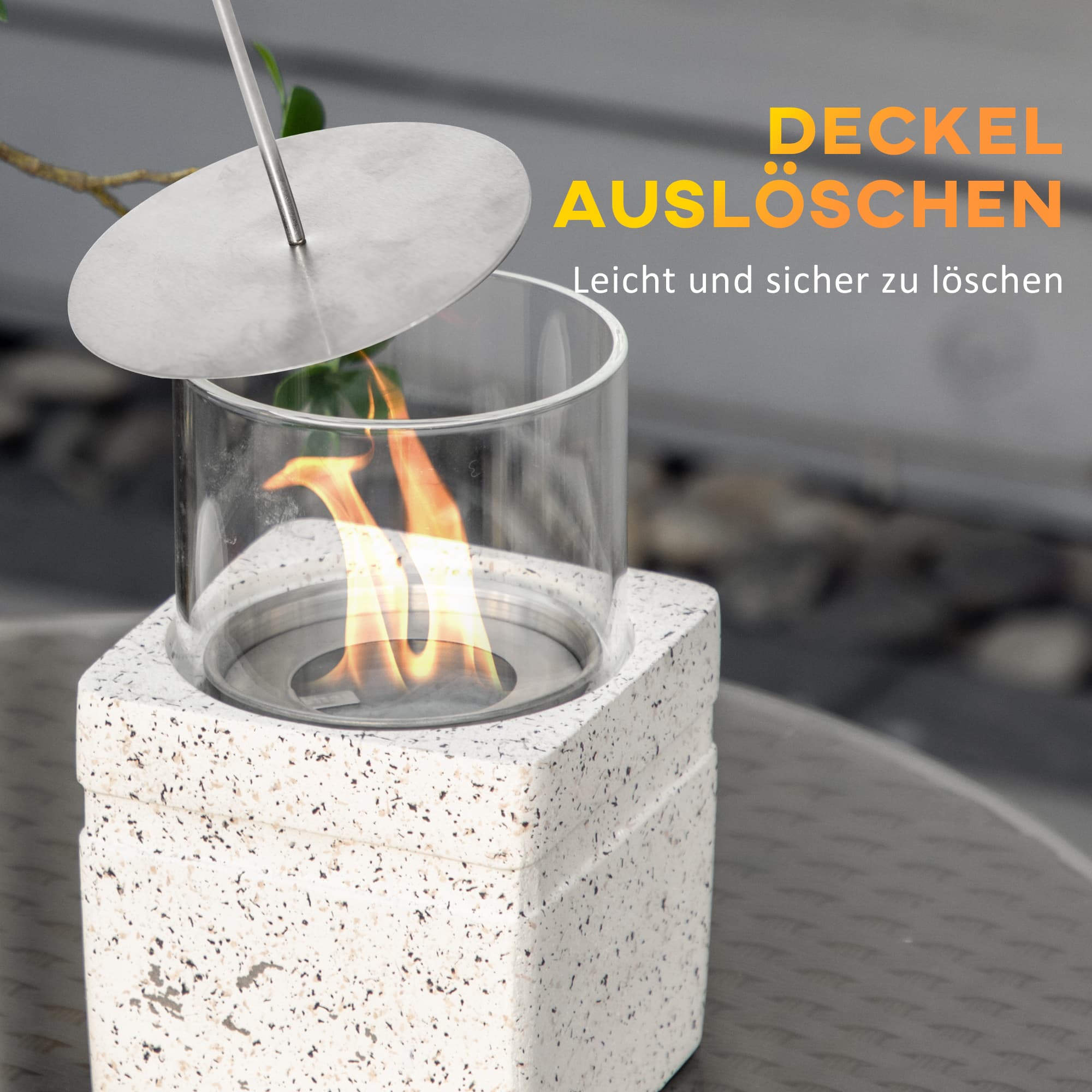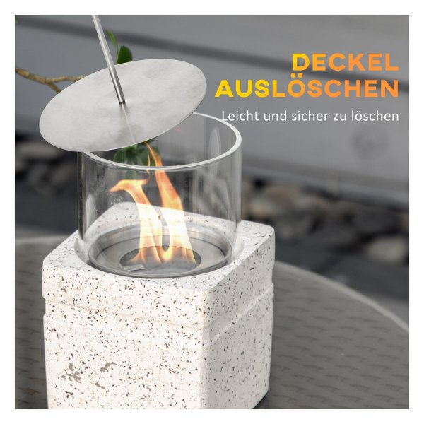 De haard wordt geleverd met een verwijderbare deksel van Ø10,5 cm, 1 x table brandweerkazerne, 1 x glasbescherming, 1 x vlam quencher en instructies voor eenvoudig gebruik. Met deze tafelhaard haal je niet alleen warmte en sfeer in huis, maar ook een stukje luxe en comfort.