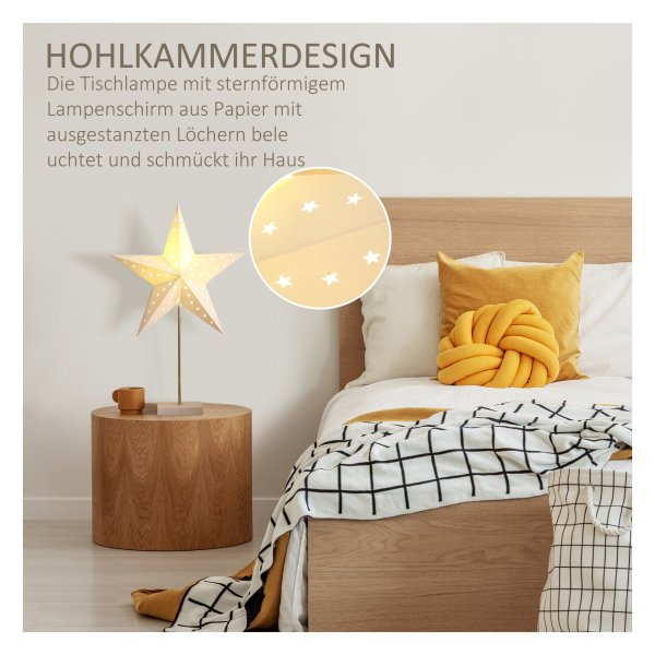 Bullet Point 1 | Moderne stijl: met uw ster -vormige lampenkap met buitentersnede is de petite tafellamp een perfecte decoratie voor uw slaapkamer, woonkamer of studie |