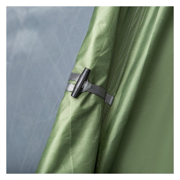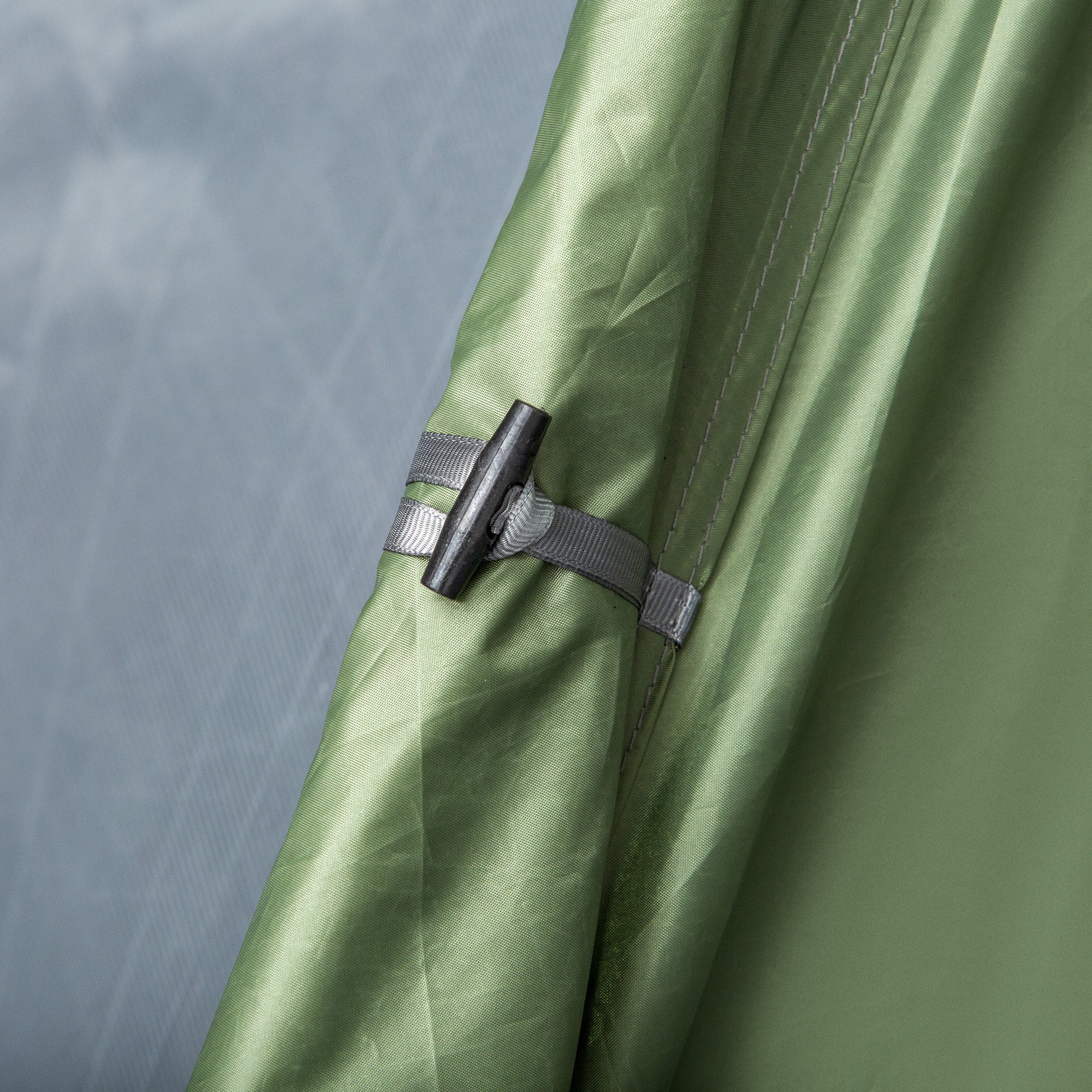 Het ontwerp van de tent omvat twee deuren met ritsen, waardoor u gemakkelijk in en uit de tent kunt komen. Daarnaast is de tweepersoonstent voorzien van handige opbergvakken voor het opbergen van kleine items.