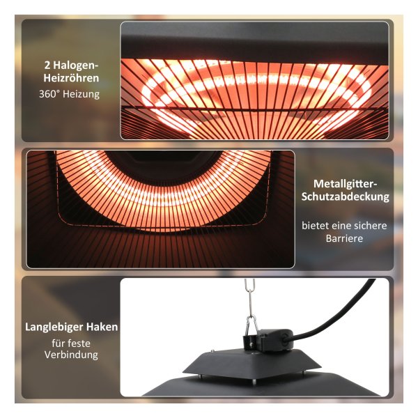 - Verwarmt en verlicht je terras met 2 halogeenbuizen