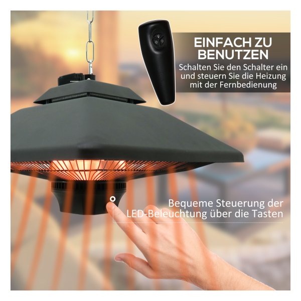 Terrasverwarming – LED verlichting – Afstandsbediening – Zwart