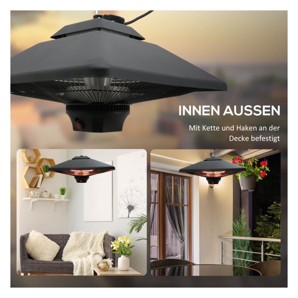 De LuxLight Terrasverwarming is gemaakt van hoogwaardige materialen zoals aluminium, ijzer en plastic in een stijlvolle zwarte kleur. Met afmetingen van L43 x B43 x H25CM past deze terrasverwarming mooi op elk terras. De metalen ketting heeft een lengte van 0,5 meter en de terrasverwarming wordt geleverd met een voedingskabel van 1,8 meter voor gemakkelijke aansluiting.