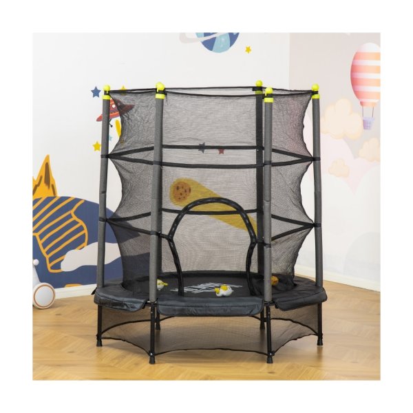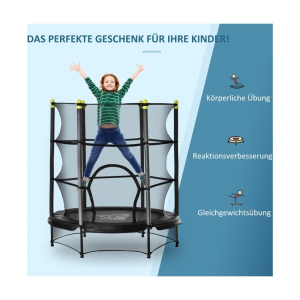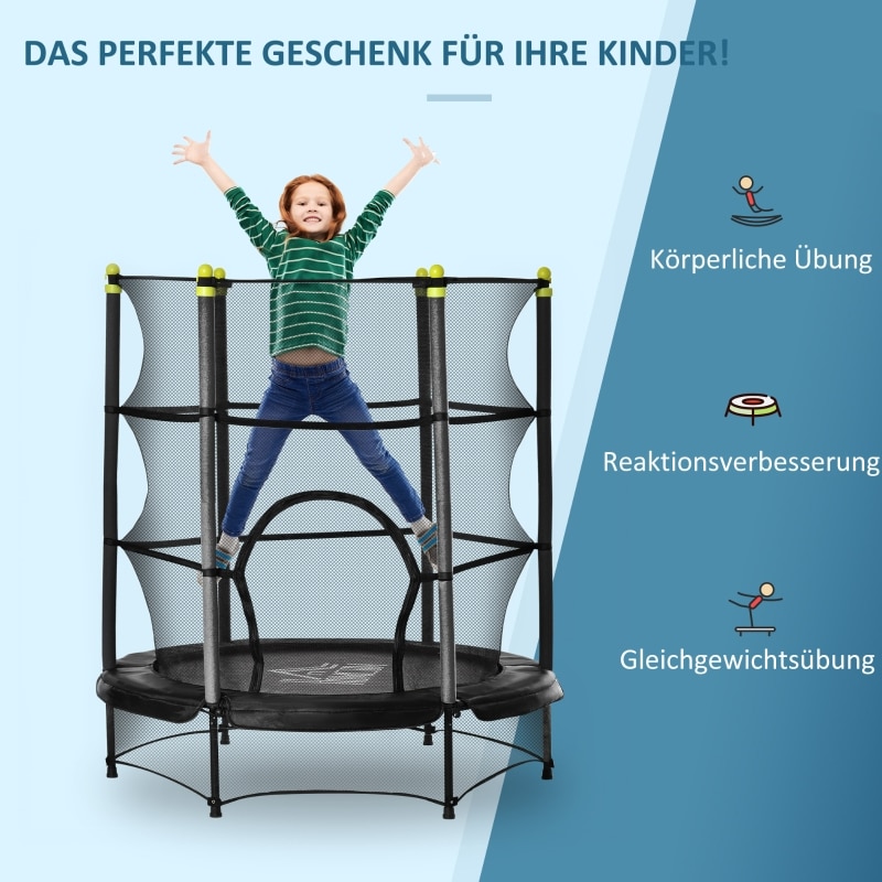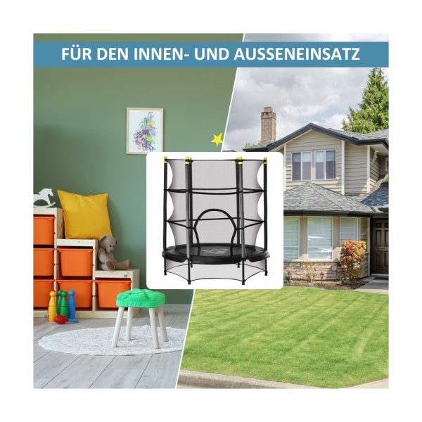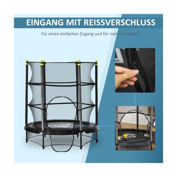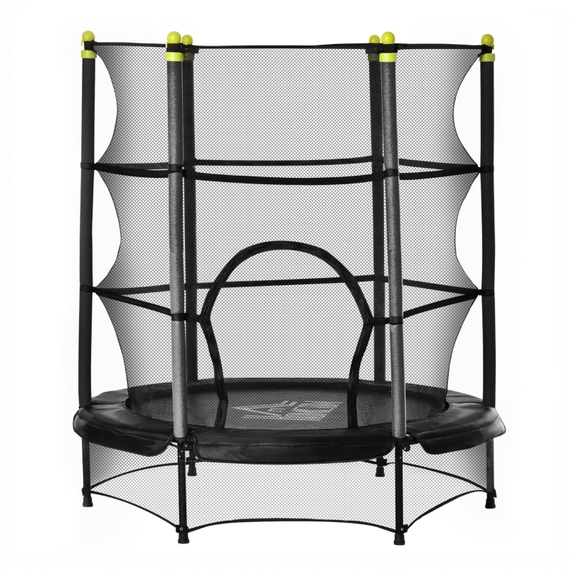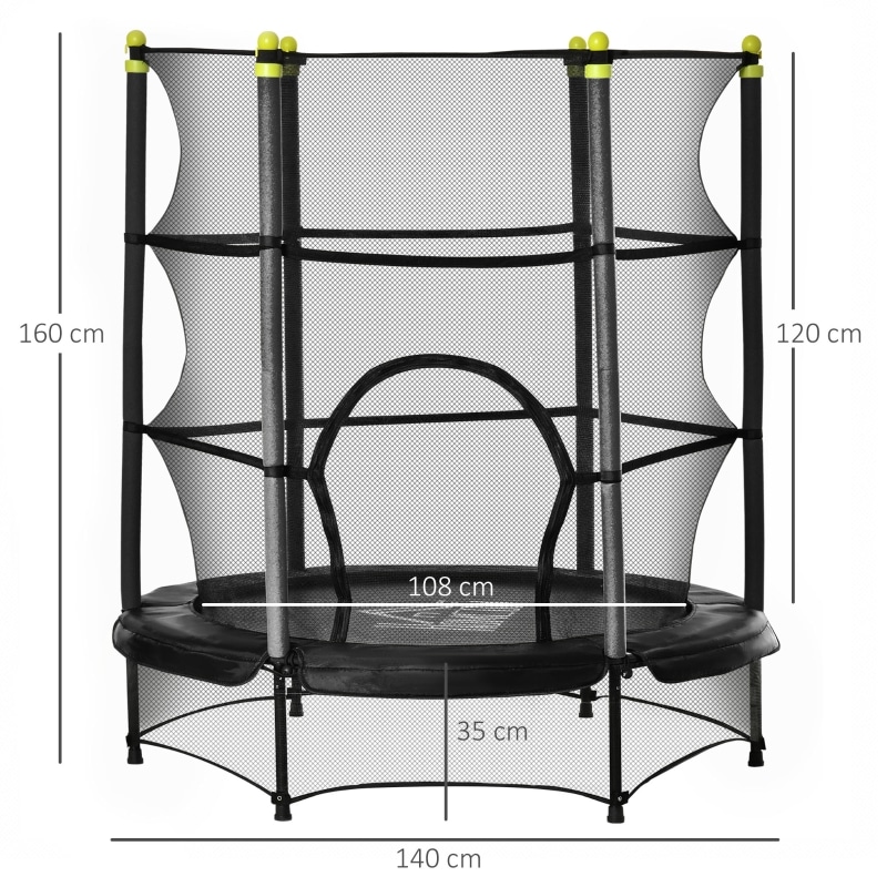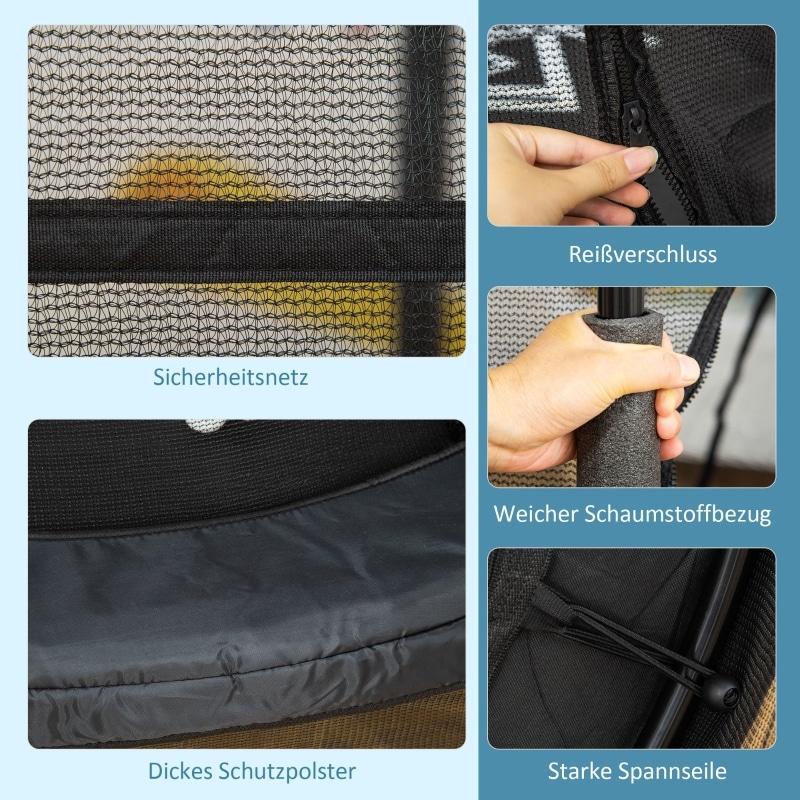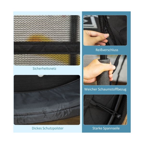 Het springoppervlak van de trampoline is bijzonder scheurvast en robuust, waardoor kinderen tot 45 kg zonder zorgen kunnen springen en spelen. Het hoge veiligheidsnet dat rondom de trampoline is afgezet, heeft een praktische ingang die gemakkelijk te openen en te sluiten is met een rits. De trampoline is voorzien van zes stevige metalen staven, bedekt met zacht rubber, die zorgen voor een stabiele constructie en de impact van eventuele schokken opvangen om verwondingen te voorkomen.