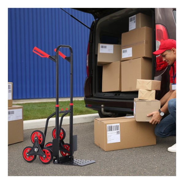 De transportkar met een sterk draagvermogen en verstelbare handgreep is de perfecte oplossing voor het gemakkelijk vervoeren van grote en zware goederen, zelfs op ongelijke vloeren en trappen. Met deze transportkar kunt u moeiteloos zware lasten veilig verplaatsen en bent u verzekerd van stabiliteit en betrouwbaarheid.