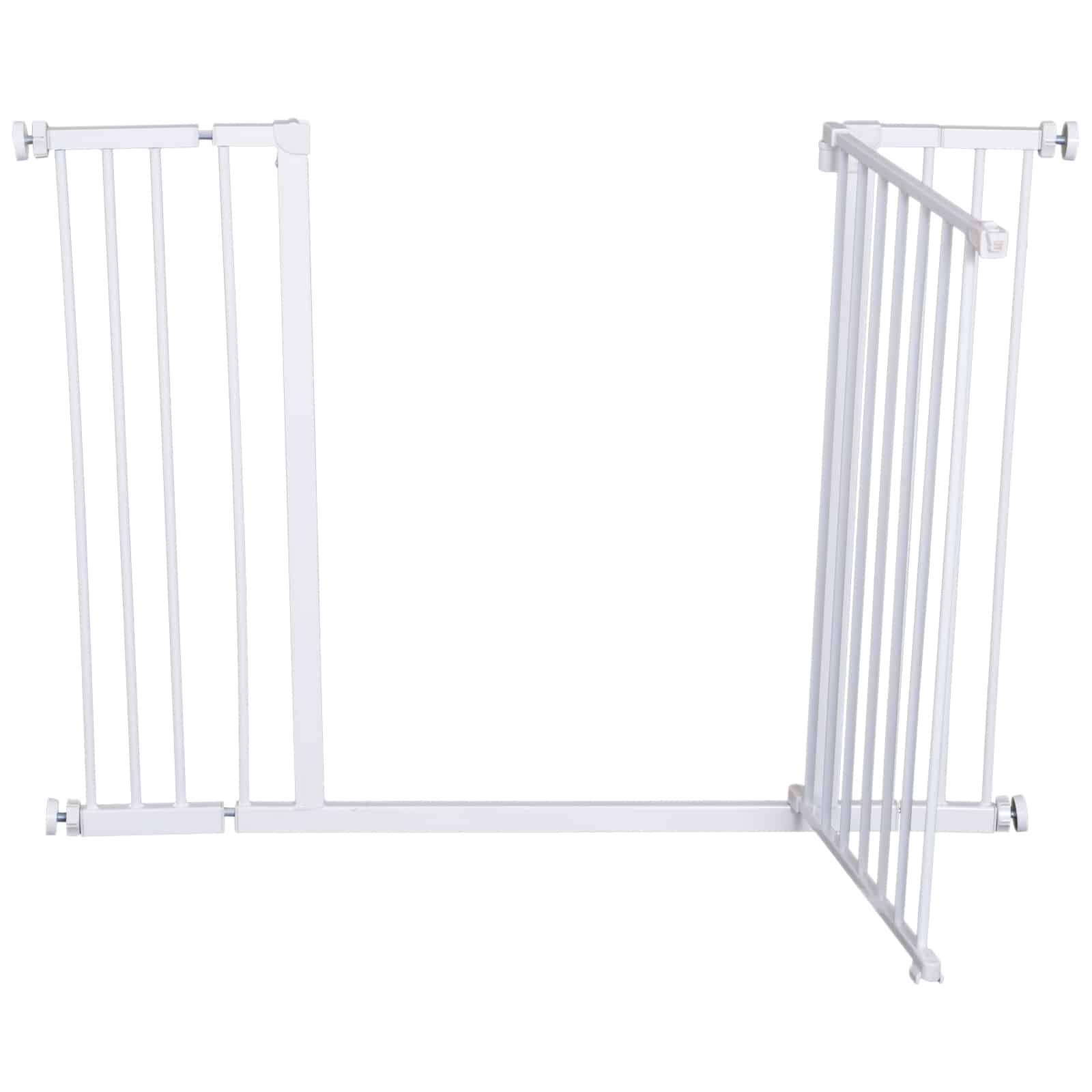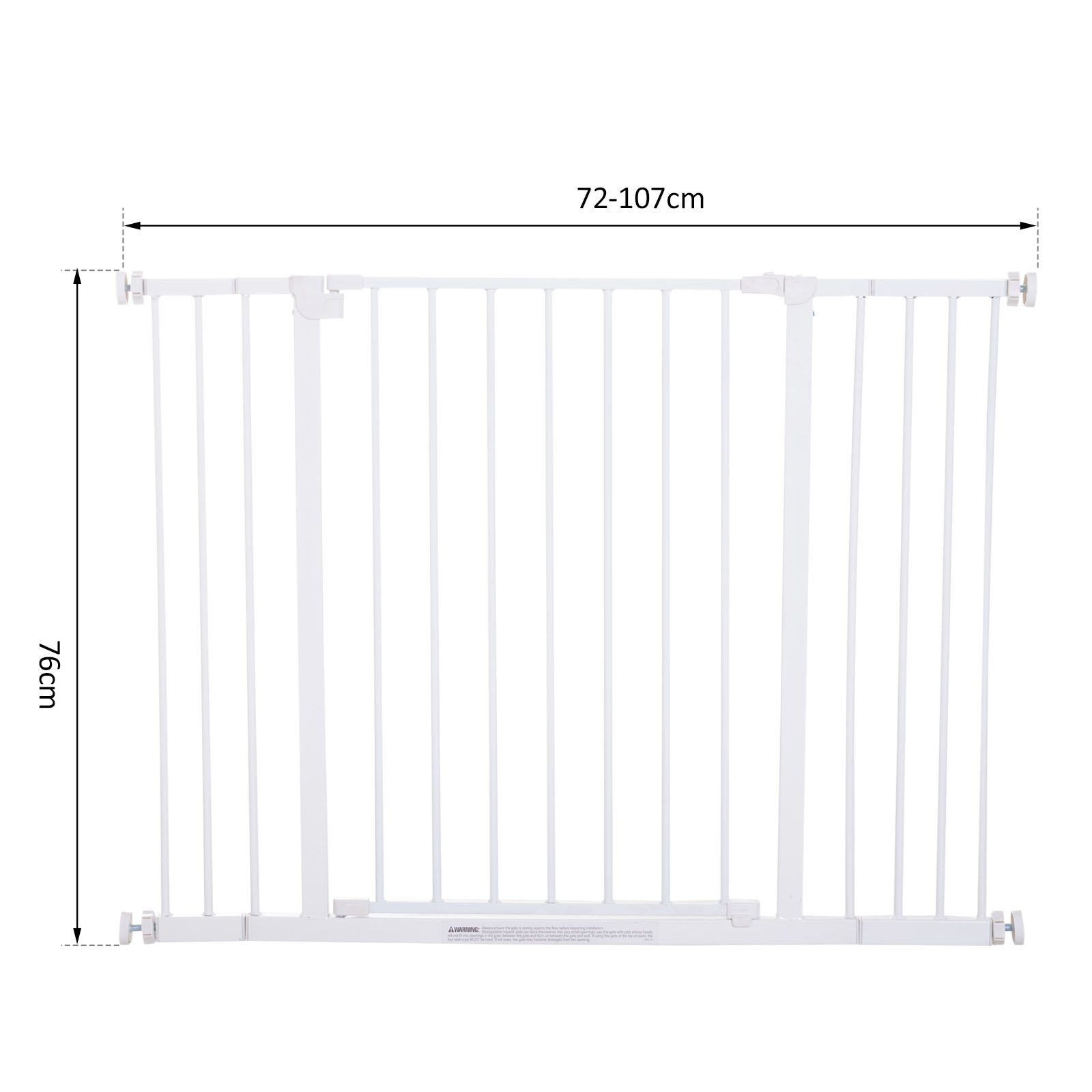 Het Trappenhekwerk is verstelbaar in breedte en kan aangepast worden voor verschillende deurbreedtes met behulp van de bijgeleverde twee extra expansieonderdelen. Hierdoor kan het hekwerk worden gebruikt voor deuropeningen van 76 cm tot 107 cm breed. De ingang van het hekwerk is 49 cm breed en heeft een hoogte van 76 cm.