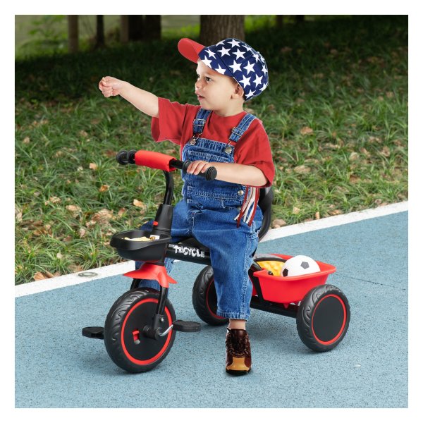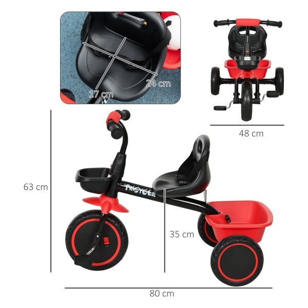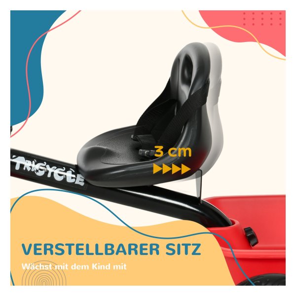 Wil je je kleine avonturier verrassen met de kinderfiets driewieler? Deze stoere driewieler groeit mee met je kind dankzij de verstelbare stoel. Met het stabiele metalen frame en de bekkengordel kan je kleine veilig en comfortabel op pad. Laat je kind de wereld ontdekken en tegelijkertijd motorische vaardigheden ontwikkelen tijdens het leren fietsen. De twee fietsmanden bieden genoeg ruimte voor snacks en speelgoed, perfect voor spontane avonturen!