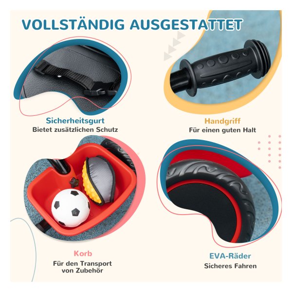 - Verstelbare stoel met bekkengordel voor een veilige en gemakkelijke rit
