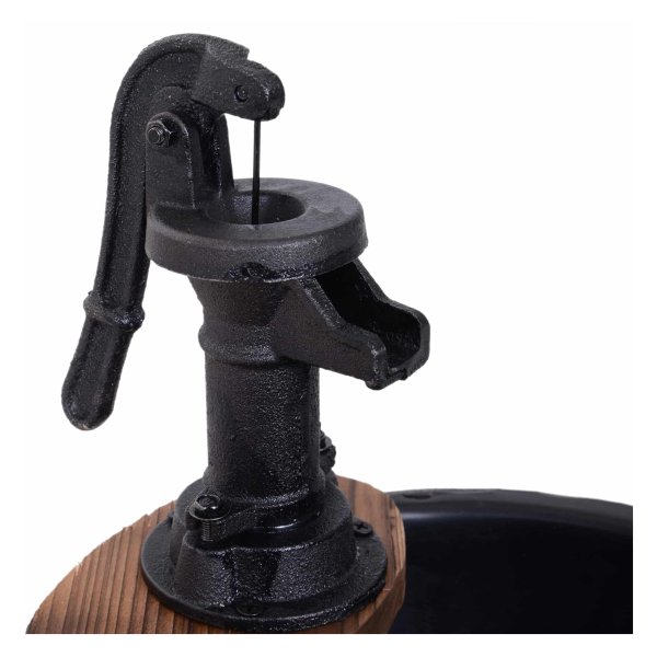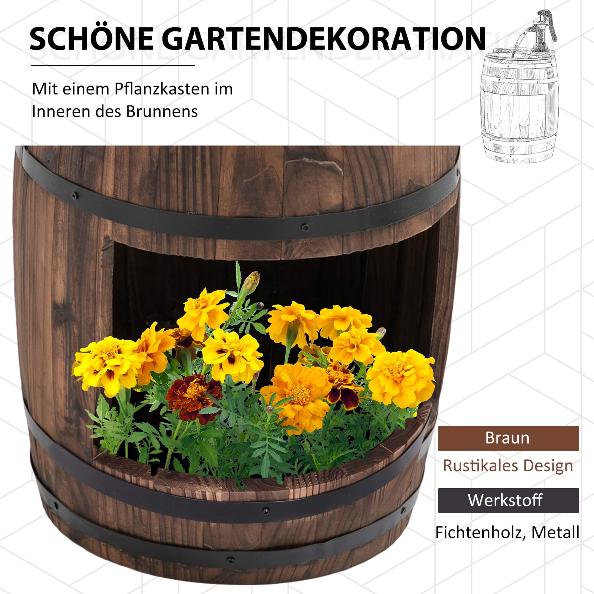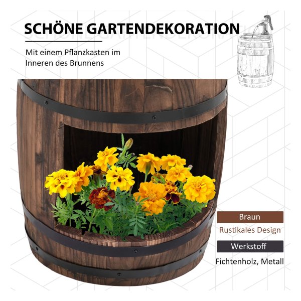 In de uitsparing in het onderste deel van de fontein kunt u uw favoriete bloemen planten, wat zorgt voor nog meer landelijke charme. Het donkerbruine hout van de fontein straalt warmte uit en past perfect in een natuurlijke omgeving.