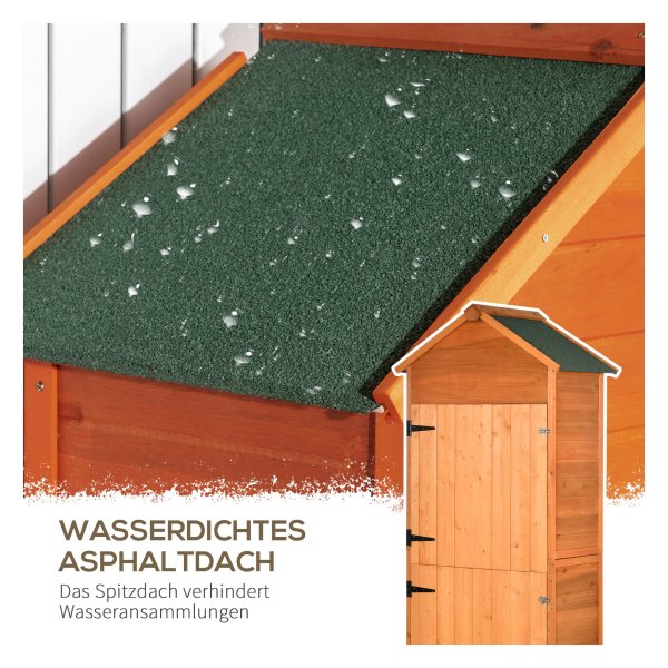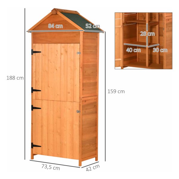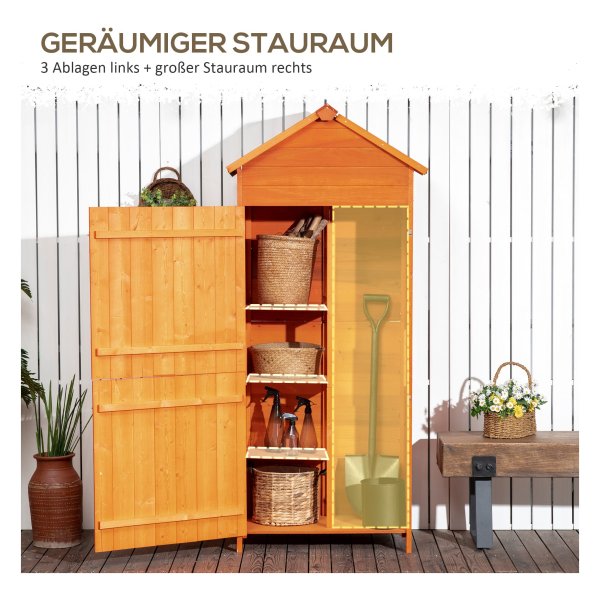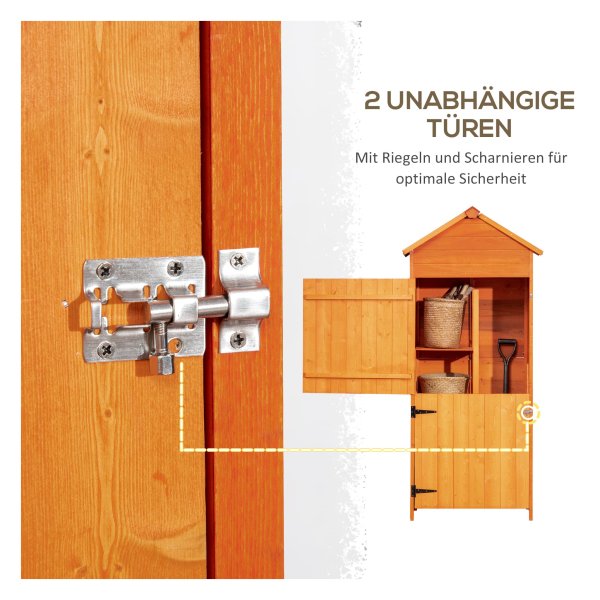 Deze stevige tuinkast is volledig gemaakt van duurzaam hout, waardoor hij bestand is tegen verschillende weersomstandigheden. Hierdoor kunt u uw tuingereedschap op een veilige en droge manier opbergen, zodat het langer meegaat.