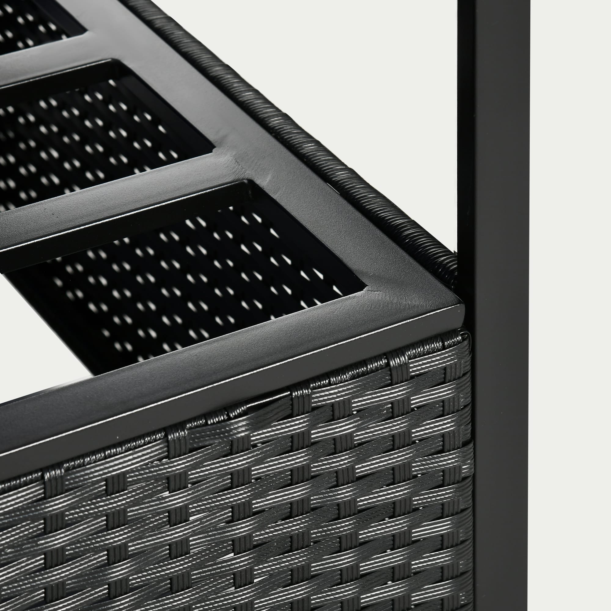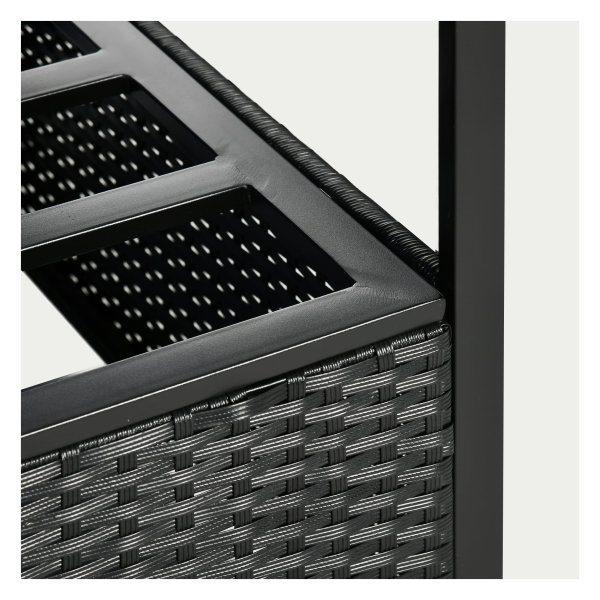 Deze tuinset wordt geleverd met een bank met drie zitplaatsen en een dubbele oven, waardoor u voldoende ruimte heeft om te ontspannen en te genieten van het buitenleven. Het stalen frame is duurzaam en stabiel, terwijl het PE-Rattan materiaal zorgt voor minimaal onderhoud.