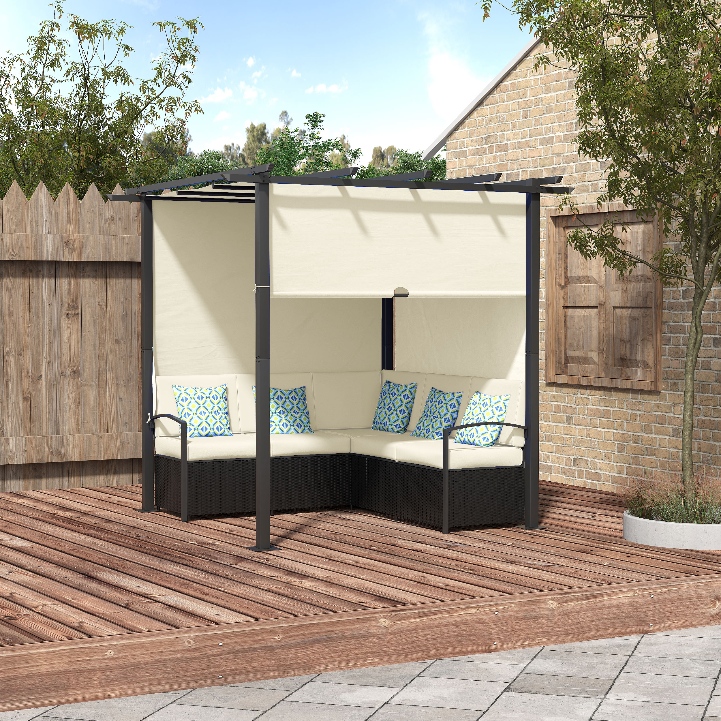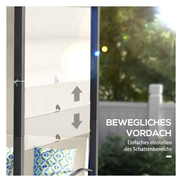 Een terras pergola met een gecoate polyester luifel beschermt u tegen schadelijke UV-straling en zorgt voor een aangename omgeving. De polyester stof is weerbestendig en UV-bestendig, waardoor de set lang mooi blijft.